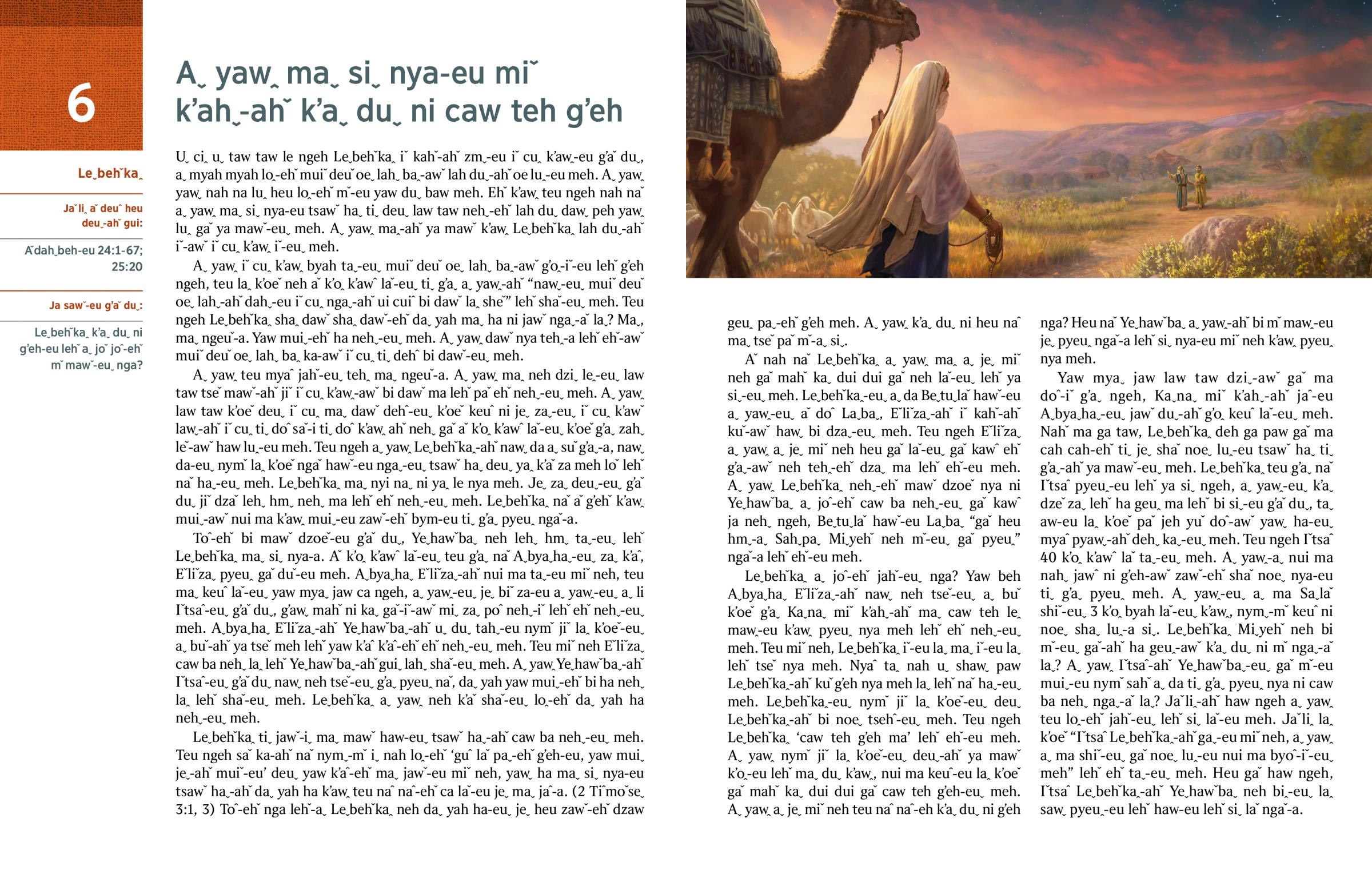 Leˬbehˇkaꞈ aˬ joˆ˗ehˇ jahˇ˗euˬ nga? Yaw beh Aˬbyaˬhaˬ Eˇliˇzaˬ˗ahˇ nawˬ neh tseˇ˗euˬ aˬ buˇ kʼoeˇ gʼaˬ Kaˬnaˬ miˇ kʼahˬ˗ahˇ maˬ caw teh leꞈ mawꞈ˗eu kʼawꞈ pyeuꞈ nya meh lehˇ ehˇ nehˬ˗euˬ meh. Teu miˇ neh, Leˬbehˇkaꞈ iˇ˗eu laˬ maˬ iˇ˗eu laˬ lehˇ tseˇ nya meh. Nyaˆ taꞈ nah uˬ shawˬ paw Leˬbehˇkaꞈ˗ahˇ kuˇ gʼeh nya meh laˬ lehˇ naˇ haˬ˗euˬ meh. Leˬbehˇkaꞈ˗euˬ nymˇ jiˇ laꞈ kʼoeˇ˗euˬ deuˬ Leˬbehˇkaꞈ˗ahˇ bi noeˬ tsehˆ˗euˬ meh. Teu ngeh Leˬbehˇkaꞈ ‘caw teh gʼeh ma’ lehˇ ehˇ˗eu meh. Aˬ yawꞈ nymˇ jiˇ laꞈ kʼoeˇ˗euˬ deuˬ˗ahˇ ya mawˇ kʼoꞈ˗eu lehˇ maˬ duˬ kʼawꞈ, nui ma keuˆ˗eu laꞈ kʼoeˇ gaˇ mahˇ kaˬ dui dui gaˇ caw teh gʼeh˗euˬ meh. Aˬ yawꞈ aˬ jeˬ miˇ neh teu naˆ naˆ˗eh kʼaˬ duˬ ni gʼeh nga? Heu naˇ Yeˬhawˇbaˬ aˬ yawꞈ˗ahˇ bi mˇ mawꞈ˗eu jeˬ pyeuꞈ ngaˇ˗a lehˇ siˬ nya˗eu miˇ neh kʼawꞈ pyeuꞈ nya meh.