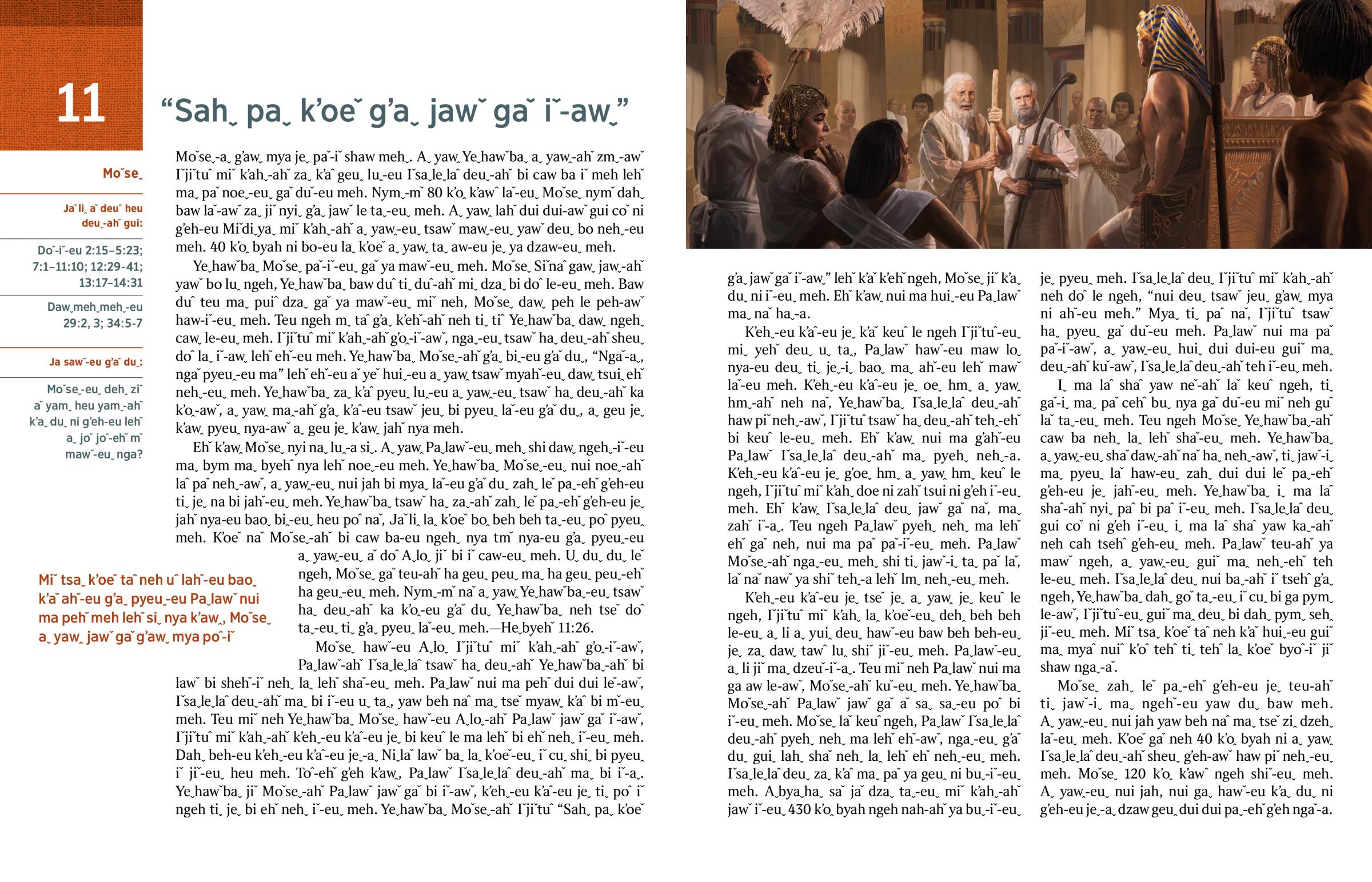 Ehˇ kʼawꞈ Moˇseˬ nyi naˬ luꞈ˗a siˬ. Aˬ yawꞈ Paˬlawˇ˗euˬ mehˬ shi dawˬ ngehˬ˗iˇ˗eu maˬ bym maˬ byehˆ nya lehˇ noeˬ˗eu meh. Yeˬhawˇbaˬ Moˇseˬ˗euˬ nui noeˬ˗ahˇ laˆ paˇ nehˬ˗awˇ, aˬ yawꞈ˗euˬ nui jah bi myaˬ laˇ˗eu gʼaˇ duˬ zahˬ leˇ paˬ˗ehˇ gʼeh˗eu tiˬ jeˬ na bi jahˇ˗euˬ meh. Yeˬhawˇbaˬ tsawˇ haˬ zaˬ˗ahˇ zahˬ leˇ paˬ˗ehˇ gʼeh˗eu jeˬ jahˇ nya˗eu baoˬ biꞈ˗euˬ heu poˆ naˇ, Jaˇliꞈ laꞈ kʼoeˇ boꞈ beh beh taˬ˗euˬ poˆ pyeuꞈ meh. Kʼoeˇ naˇ Moˇseˬ˗ahˇ bi caw ba˗eu ngehˬ nya tmˇ nya˗eu gʼaˬ pyeuꞈ˗eu aˬ yawꞈ˗euˬ aˇ doˆ Aˬloˬ jiˇ bi iˇ caw˗euˬ meh. Uˬ duˬ duˬ leˇ ngeh, Moˇseˬ gaˇ teu˗ahˇ ha geuꞈ peuˬ maˬ ha geuꞈ peuˬ˗ehˇ ha geuꞈ˗euˬ meh. Nymˬ˗mˇ naˇ aˬ yawꞈ Yeˬhawˇbaˬ˗euˬ tsawˇ haˬ deuˬ˗ahˇ ka kʼoꞈ˗eu gʼaˇ duˬ Yeˬhawˇbaˬ neh tseˇ doˆ taˬ˗euˬ tiˬ gʼaˬ pyeuꞈ laˇ˗euˬ meh.—Heˬbyehˇ 11:26.