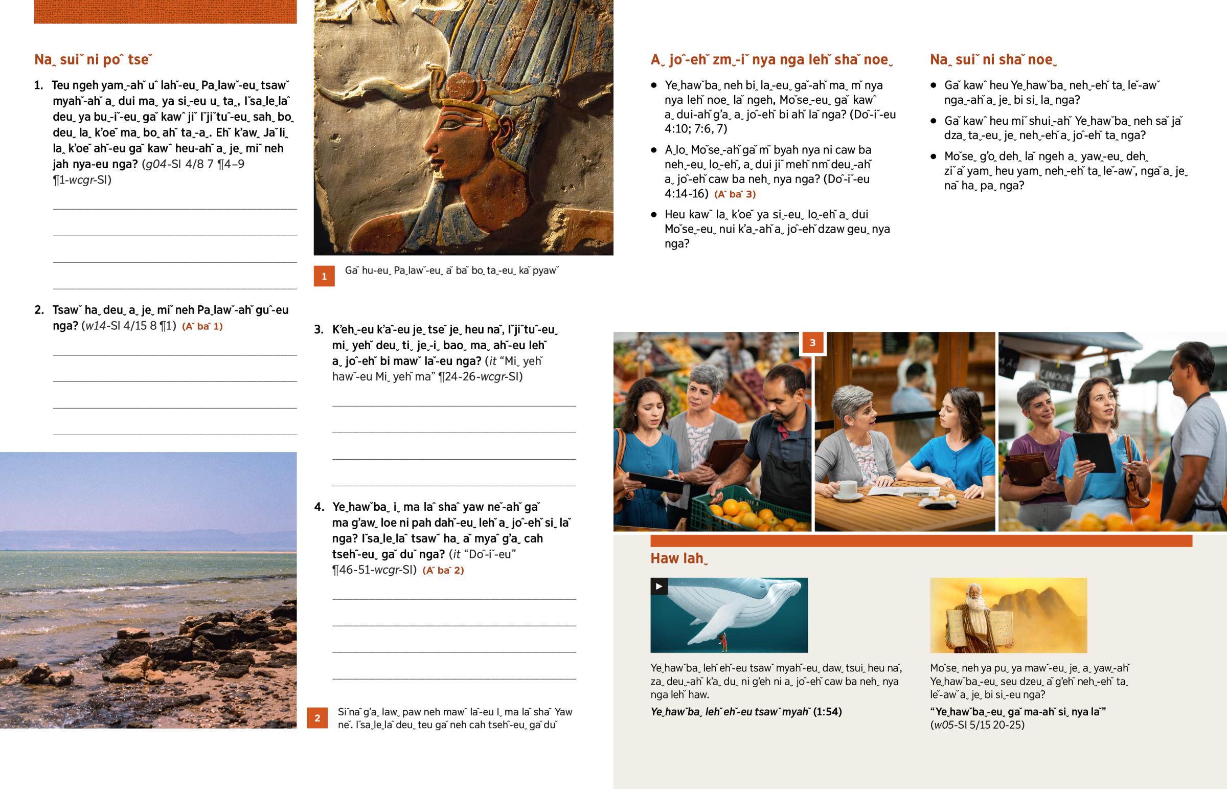 4. Yeˬhawˇbaˬ iˬ ma laˆ shaˆ yaw neˇ˗ahˇ gaˇ ma gʼawˬ loe ni pah dahˇ˗euˬ lehˇ aˬ joˆ˗ehˇ siˬ laˇ nga? Iˇsaˬleˬlaˆ tsawˇ haˬ aˇ myaˆ gʼaˬ cah tsehˆ˗euˬ gaˇ duˇ nga? (it “Doˆ˗iˇ˗eu” ¶46-51-wcgr˗SI) (Aˇ baˇ 2)