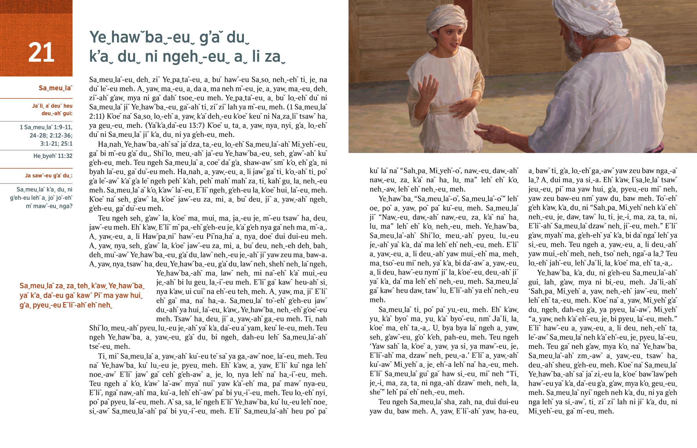 Yeˬhawˇbaˬ kʼaˬ duˬ ni gʼeh˗eu Saˬmeuˬlaˆ˗ahˇ guiˬ lahˬ gʼawˬ mya ni biꞈ˗euˬ meh. Jaˇliꞈ˗ahˇ ‘Sahˬpaˬ Miˬyehˇ aˬ yawꞈ nehˬ˗ehˇ jawˇ˗euˬ meh’ lehˇ ehˇ taˬ˗euˬ meh. Kʼoeˇ naˇ aˬ yawꞈ Miˬyehˇ gʼaˇ duˬ ngehˬ dah˗eu gʼaˬ ya pyeuꞈ laˇ˗awˇ, Miˬyehˇ “aˬ yawꞈ neh kʼaˇ ehˇ˗euˬ jeˬ bi pyeuꞈ laˇ˗euˬ meh.” Eˇliˆ hawˇ˗eu aˬ yawꞈ˗euˬ aˬ li deuˬ nehˬ˗ehˇ taꞈ leˇ˗awˇ Saˬmeuˬlaˆ neh kʼaˇ ehˇ˗euˬ jeˬ pyeuꞈ laˇ˗euˬ meh. Teu gaˇ neh gʼawˬ mya kʼoꞈ naˇ Yeˬhawˇbaˬ Saˬmeuˬlaˆ˗ahˇ zmˬ˗awˇ aˬ yawꞈ˗euˬ tsawˇ haˬ deuˬ˗ahˇ sheuˬ gʼeh˗euˬ meh. Kʼoeˇ naˇ Saˬmeuˬlaˆ Yeˬhawˇbaˬ˗ahˇ saˇ jaˇ ziꞈ˗eu laꞈ kʼoeˇ bawˇlawˇpeh hawˇ˗eu yaˇ kʼaˬ daˇ˗eu gʼaˬ gʼawˬ mya kʼoꞈ geuꞈ˗euˬ meh. Saˬmeuˬlaˆ nyiˇ ngeh neh kʼaˬ duˬ ni ya gʼeh nga lehˇ ya siˬ˗awˇ, tiˬ ziˇ ziˇ lah ni jiˇ kʼaˬ duˬ ni Miˬyehˇ˗euˬ gaˇ mˇ˗euˬ meh.