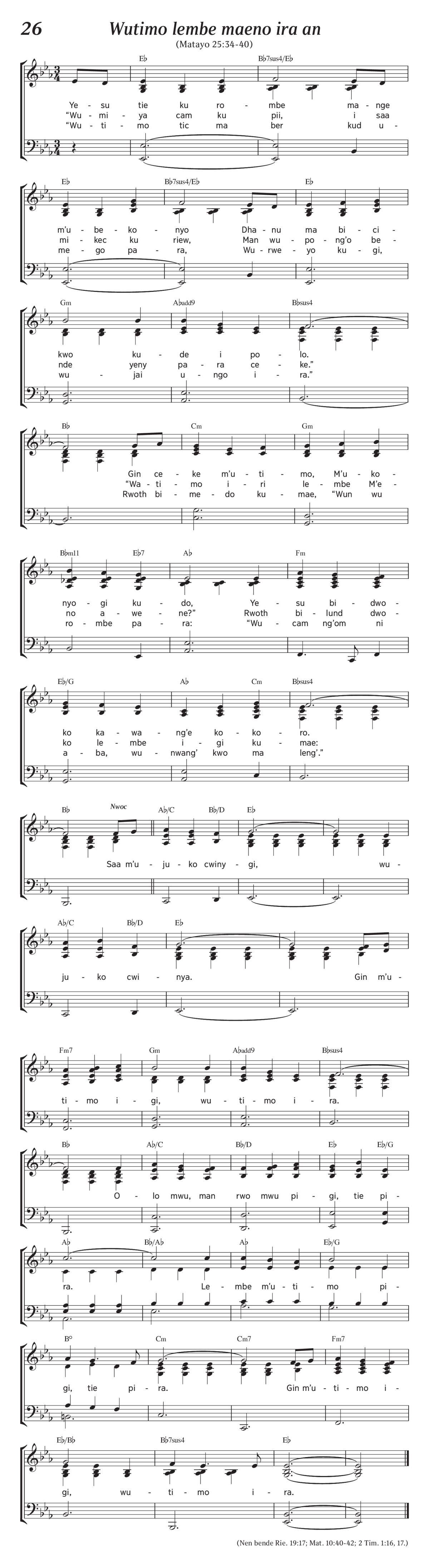 Wucam ng’om ni aba, wunwang’ kwo ma leng’.”