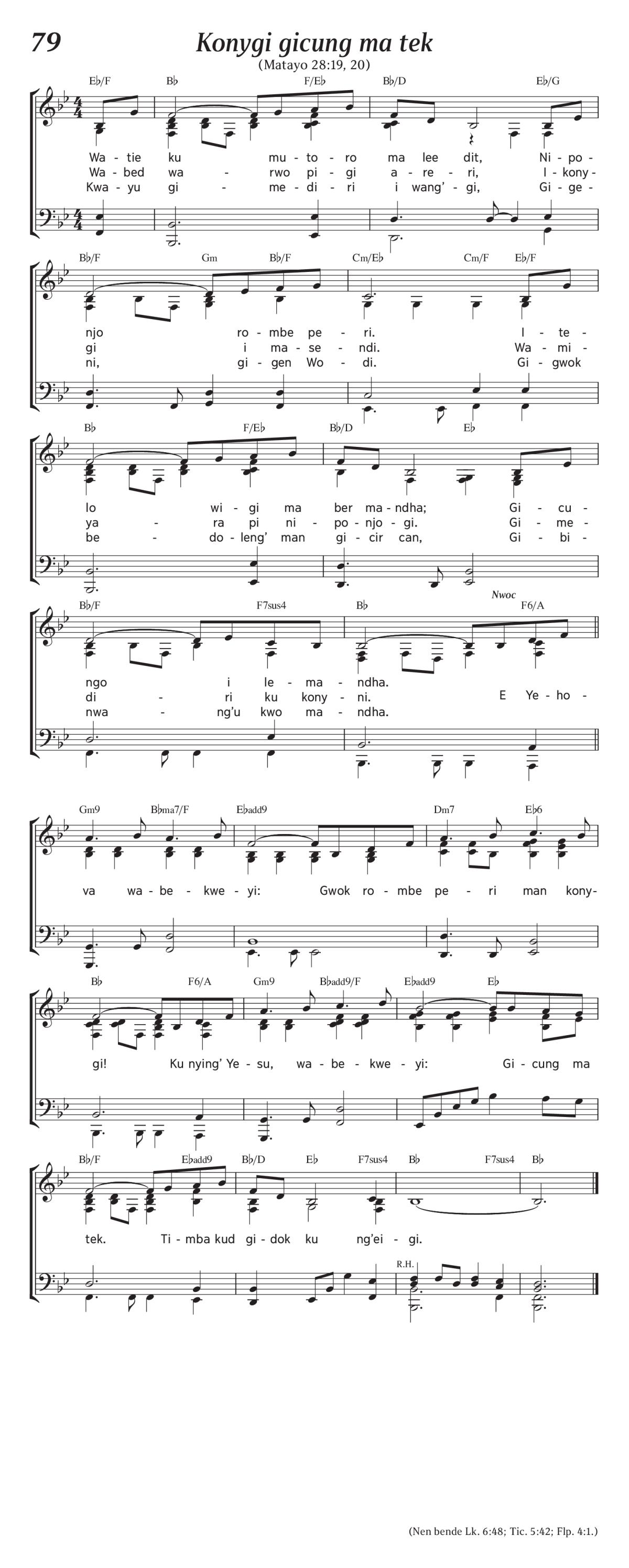 Ku nying’ Yesu, wabekweyi: Gicung ma tek.