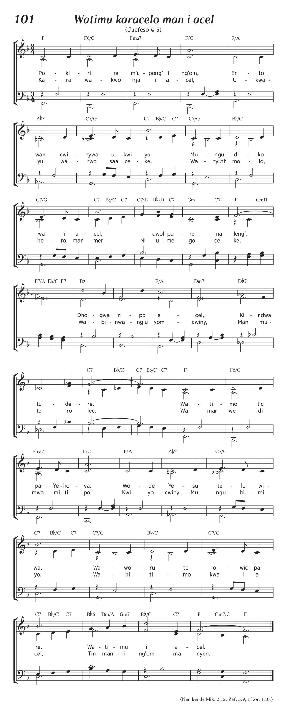 (Nen bende Mik. 2:12; Zef. 3:9; 1 Kor. 1:10.)