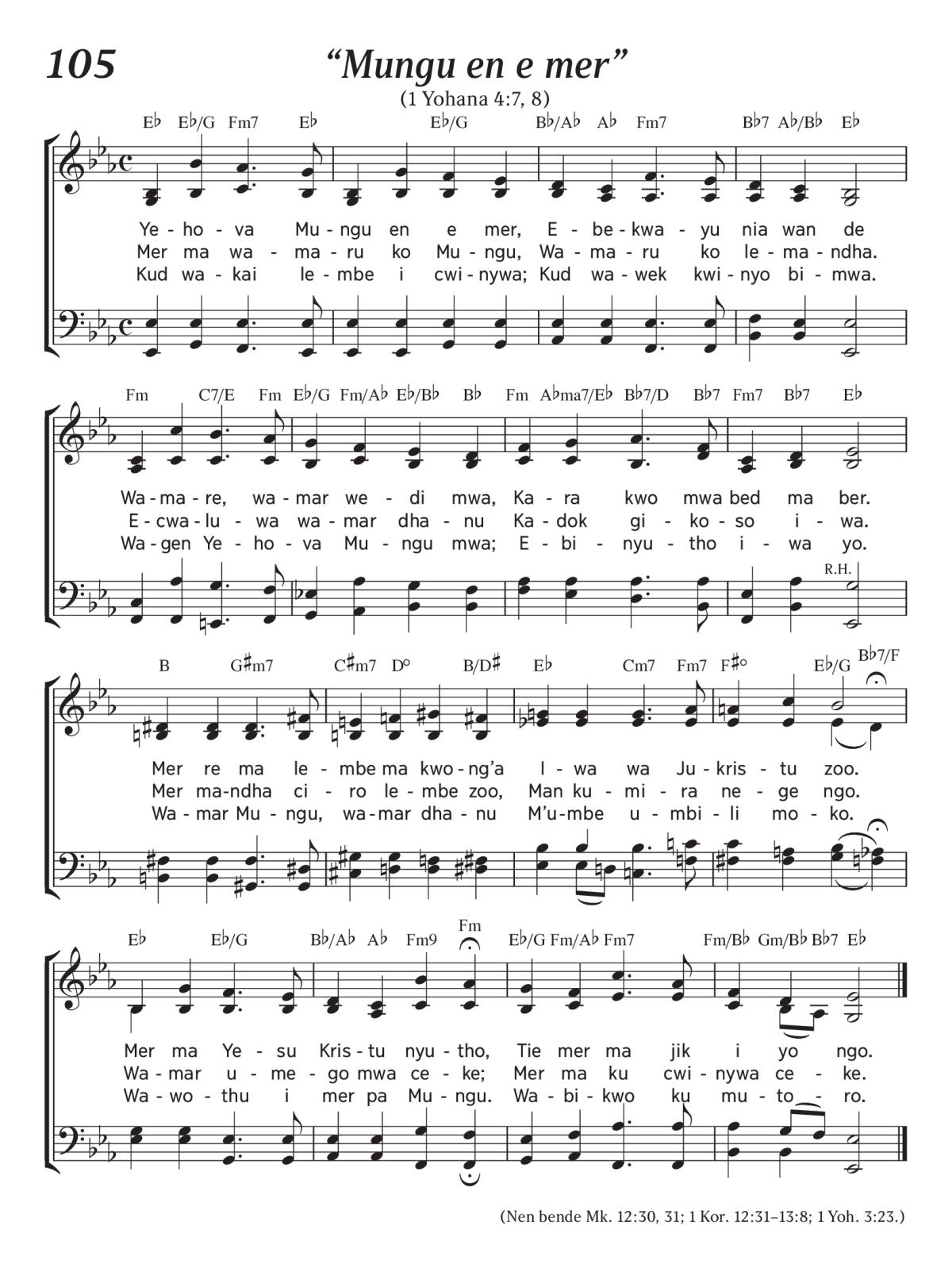 (Nen bende Mk. 12:30, 31; 1 Kor. 12:31–13:8; 1 Yoh. 3:23.)