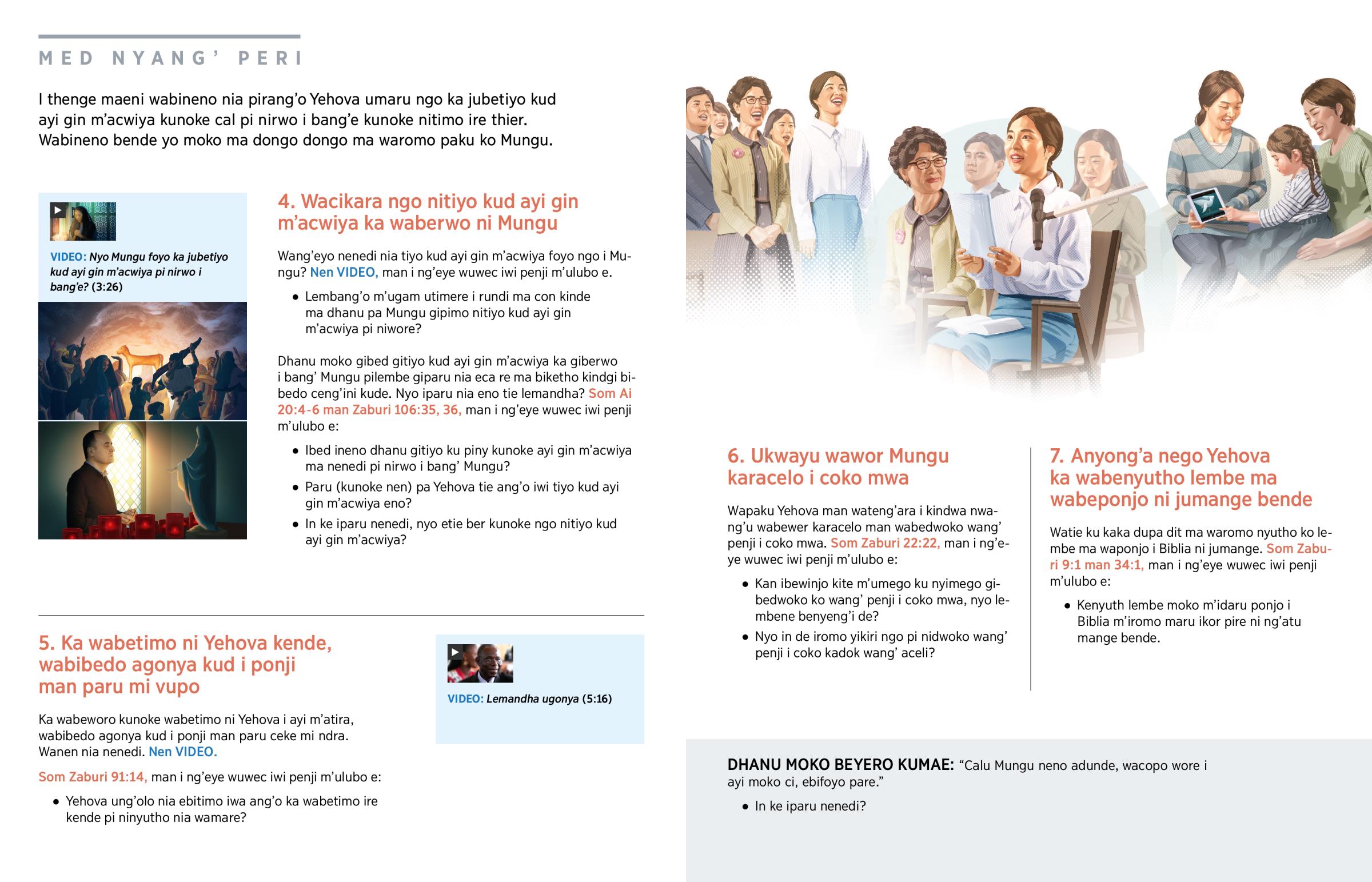 I thenge maeni wabineno nia pirang’o Yehova umaru ngo ka jubetiyo kud ayi gin m’acwiya kunoke cal pi nirwo i bang’e kunoke nitimo ire thier. Wabineno bende yo moko ma dongo dongo ma waromo paku ko Mungu.