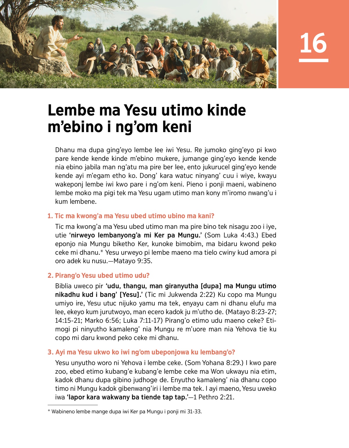 ukoro akeca lembe ma Yesu uweco pire ku jurimbe ma ceng’ini man ku dhanu mange bende. Eno ubekonyowa ninyang’ nia Yesu ubino ng’atu ma nenedi.