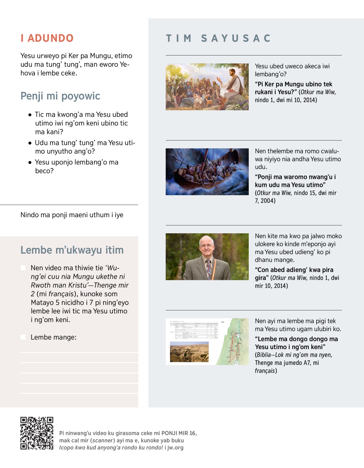 “Pi Ker pa Mungu ubino tek rukani i Yesu?” (Otkur ma Wiw, nindo 1, dwi mi 10, 2014)