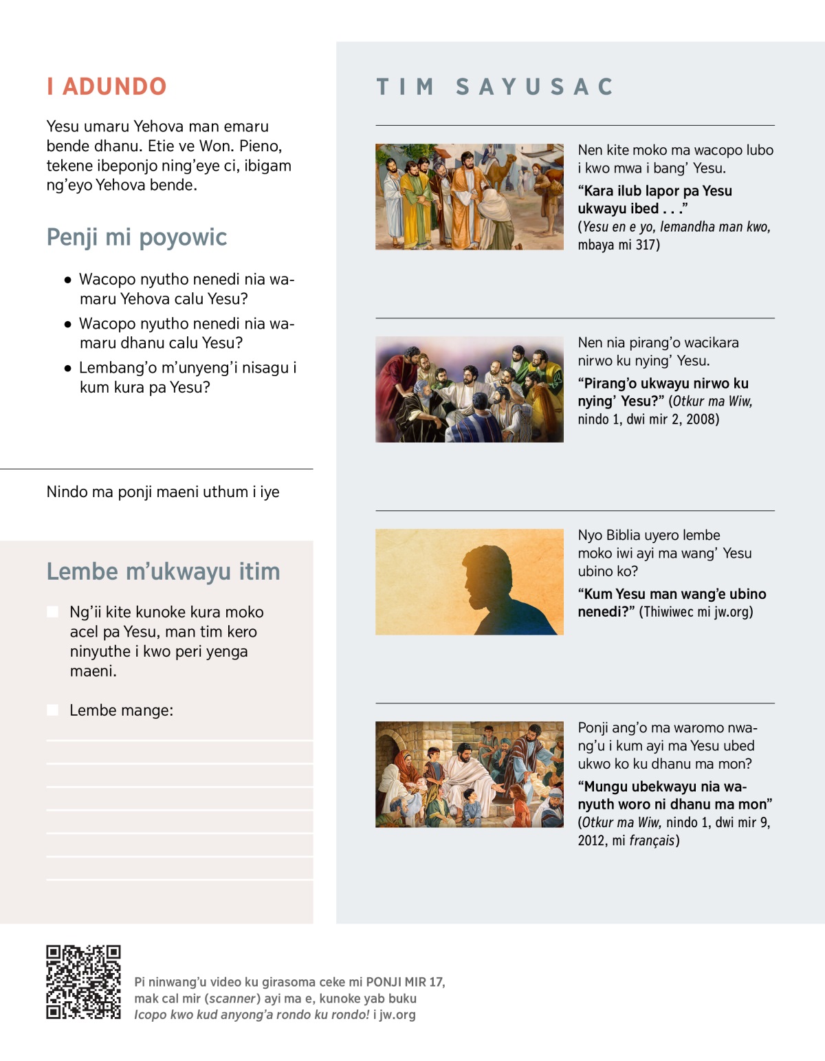 “Pirang’o ukwayu nirwo ku nying’ Yesu?” (Otkur ma Wiw, nindo 1, dwi mir 2, 2008)