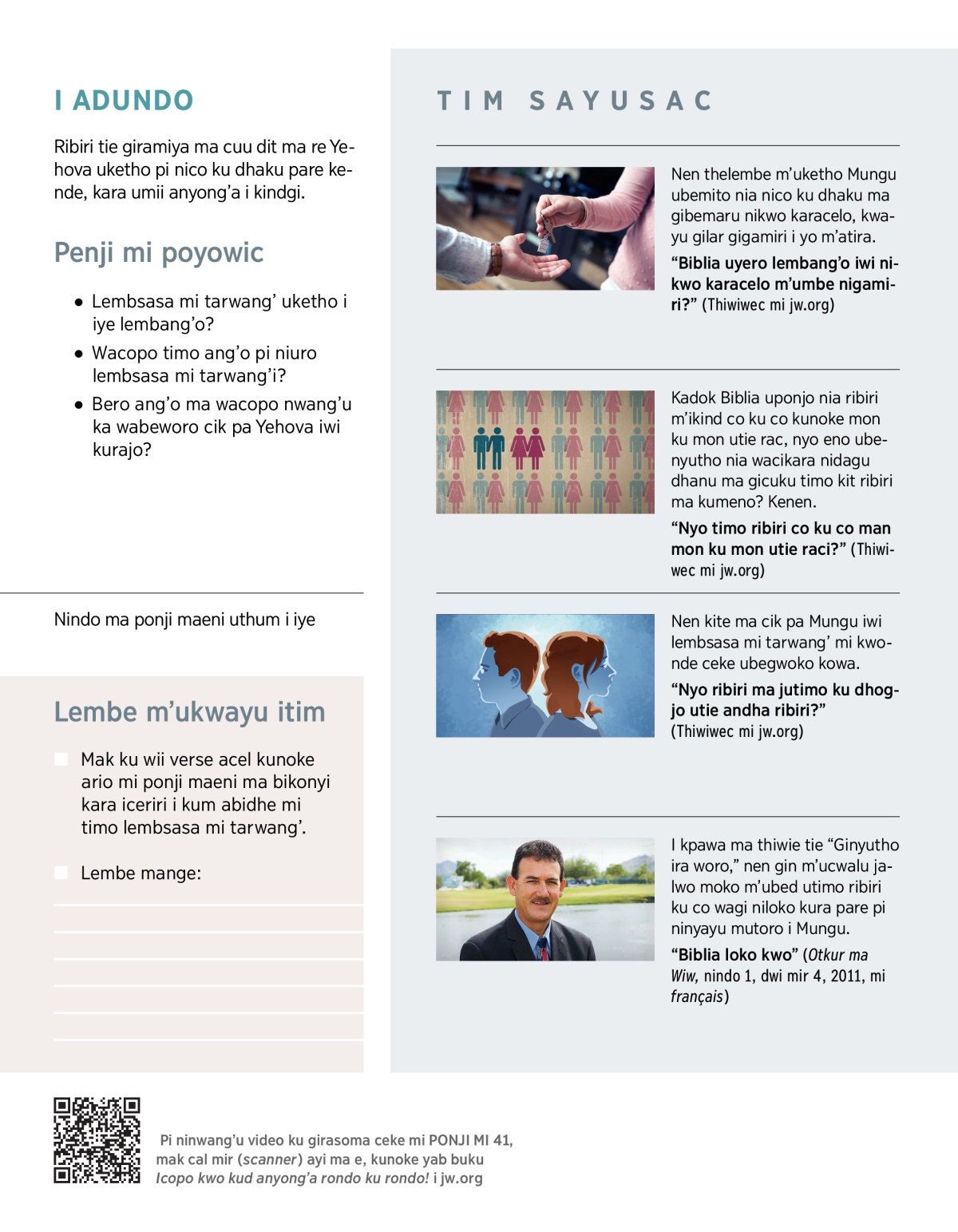 “Nyo timo ribiri co ku co man mon ku mon utie raci?” (Thiwiwec mi jw.org)