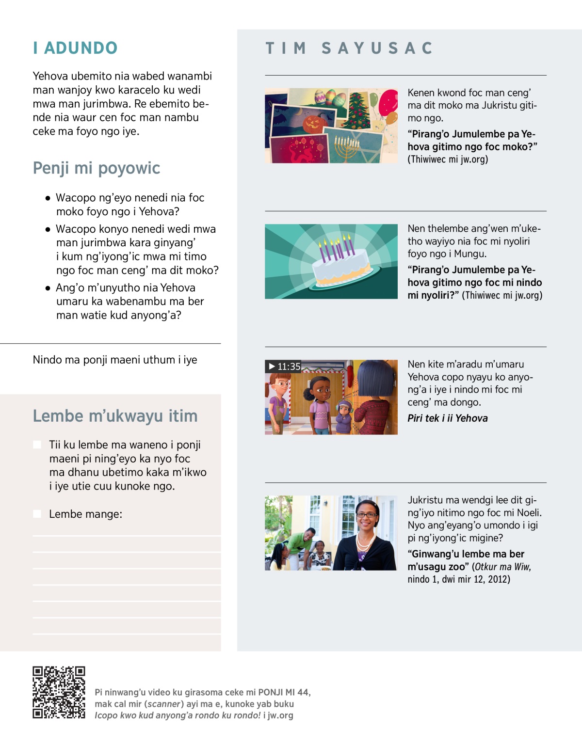 “Pirang’o Jumulembe pa Yehova gitimo ngo foc mi nindo mi nyoliri?” (Thiwiwec mi jw.org)