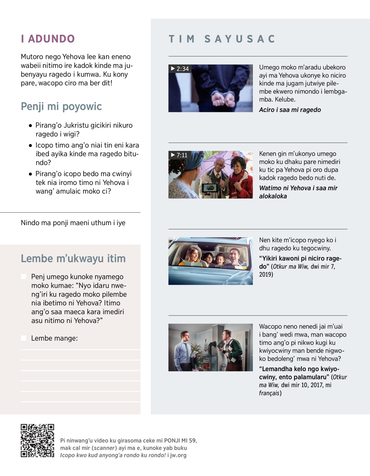 Etie lembe ma kwayu tegocwiny kara watuc nitimo ni Yehova kinde ma jumange gibeii nicerowa. Nen VIDEO, man i ng’eye wuwec iwi penji m’ulubo e: