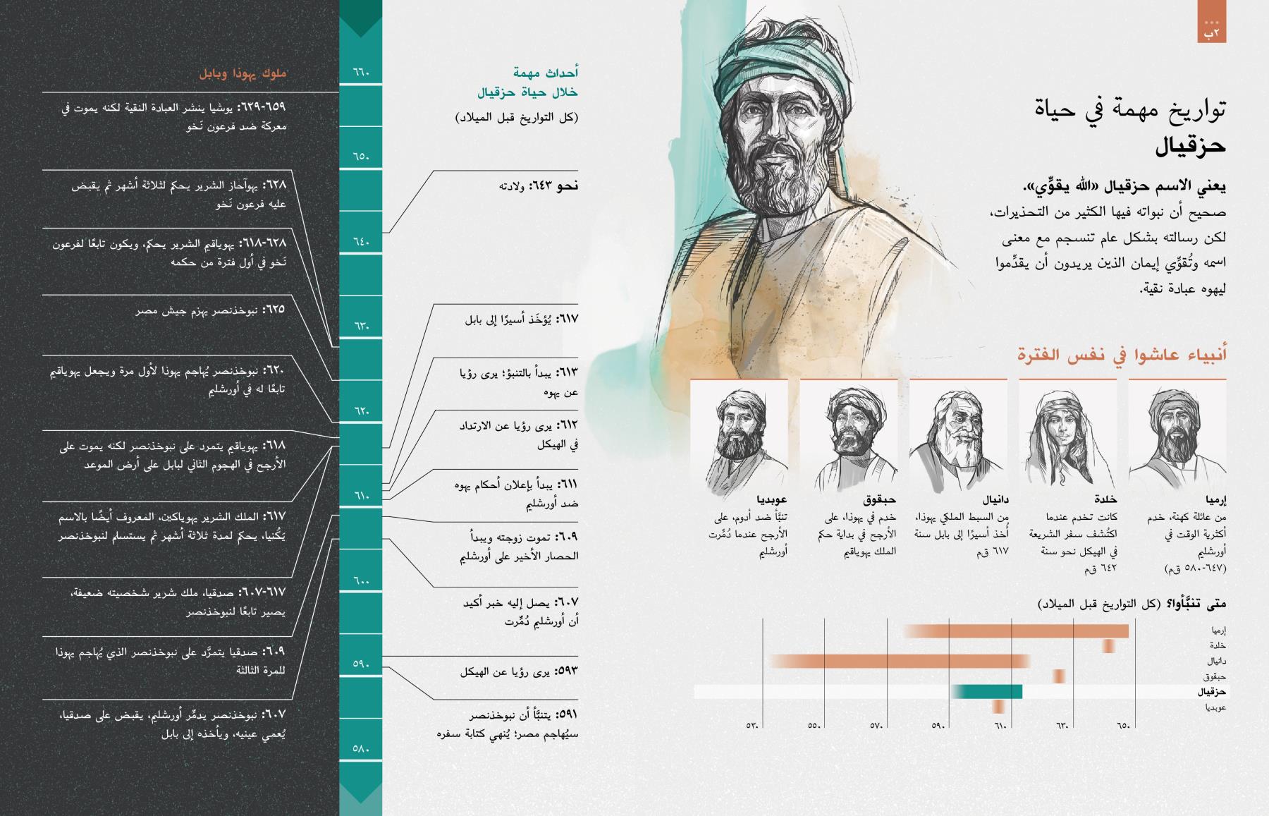 خط زمني يُظهر الأنبياء الذين عاشوا في نفس الفترة مع حزقيال (‏كل التواريخ قبل الميلاد)‏.‏ إرميا:‏ من ٦٤٧ إلى نحو ٥٨٠؛‏ خلدة:‏ نحو ٦٤٢؛‏ دانيال:‏ من نحو ٦١٧ إلى نحو ٥٣٧؛‏ حبقوق:‏ نحو ٦٢٥؛‏ حزقيال:‏ من ٦١٣ إلى نحو ٥٩١؛‏ عوبديا:‏ نحو ٦٠٧
