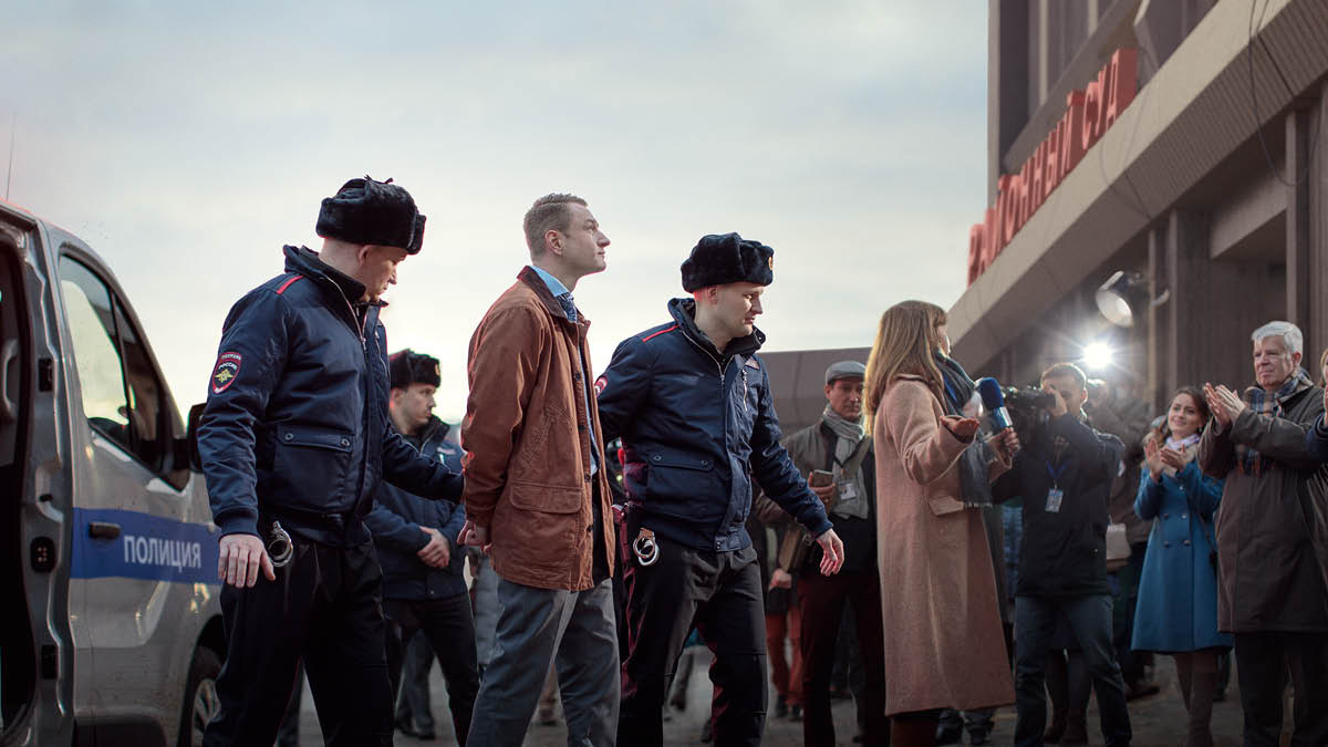 d وصف الصورة: إخوة يُظهِرون دعمهم لأخ يُعتقل ويؤخذ ليُحاكم في المحكمة.