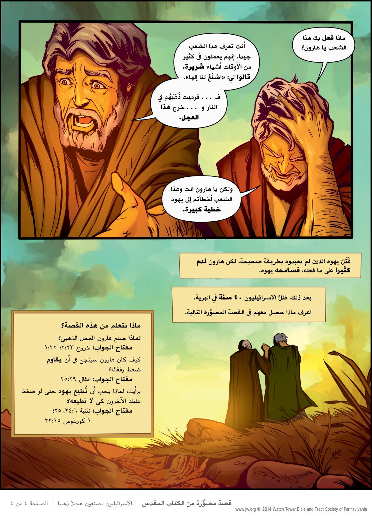 تعلم عن هارون اخي موسى الذي اخطأ حين ساعد الاسرائيليين ان يصنعوا عجلا ذهبيا.