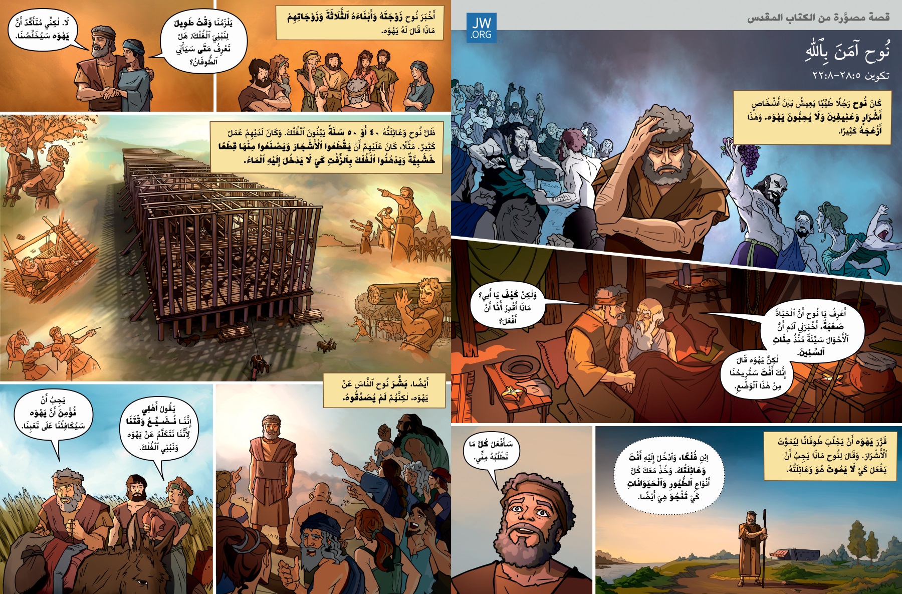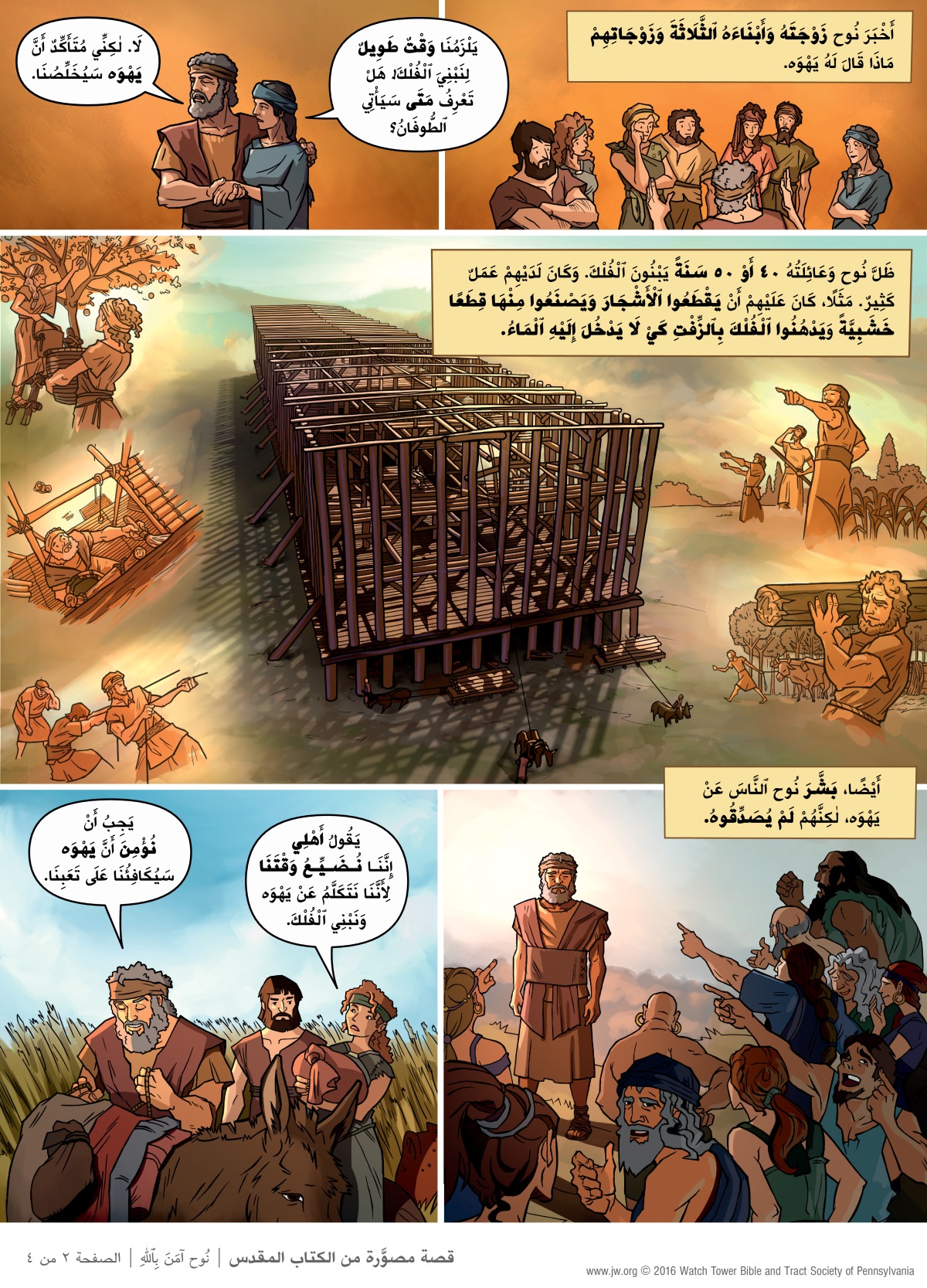 اقرأ عن نوح الذي بنى فلكا كبيرا جدا ليخلِّص عائلته والحيوانات.