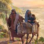 فِي يَوْمٍ مِنَ ٱلْأَيَّامِ، أَمَرَ حَاكِمُ ٱلْإِمْبَرَاطُورِيَّةِ ٱلرُّومَانِيَّةِ أُوغُسْطُس قَيْصَر كُلَّ ٱلْيَهُودِ أَنْ يَذْهَبُوا إِلَى ٱلْمِنْطَقَةِ ٱلَّتِي وُلِدُوا فِيهَا لِيُسَجِّلُوا أَسْمَاءَهُمْ هُنَاكَ. فَذَهَبَ يُوسُف وَمَرْيَم إِلَى بَيْت لَحْم لِأَنَّ عَائِلَةَ يُوسُف مِنْ تِلْكَ ٱلْمَدِينَةِ. وَكَانَتْ مَرْيَم سَتَلِدُ قَرِيبًا.
