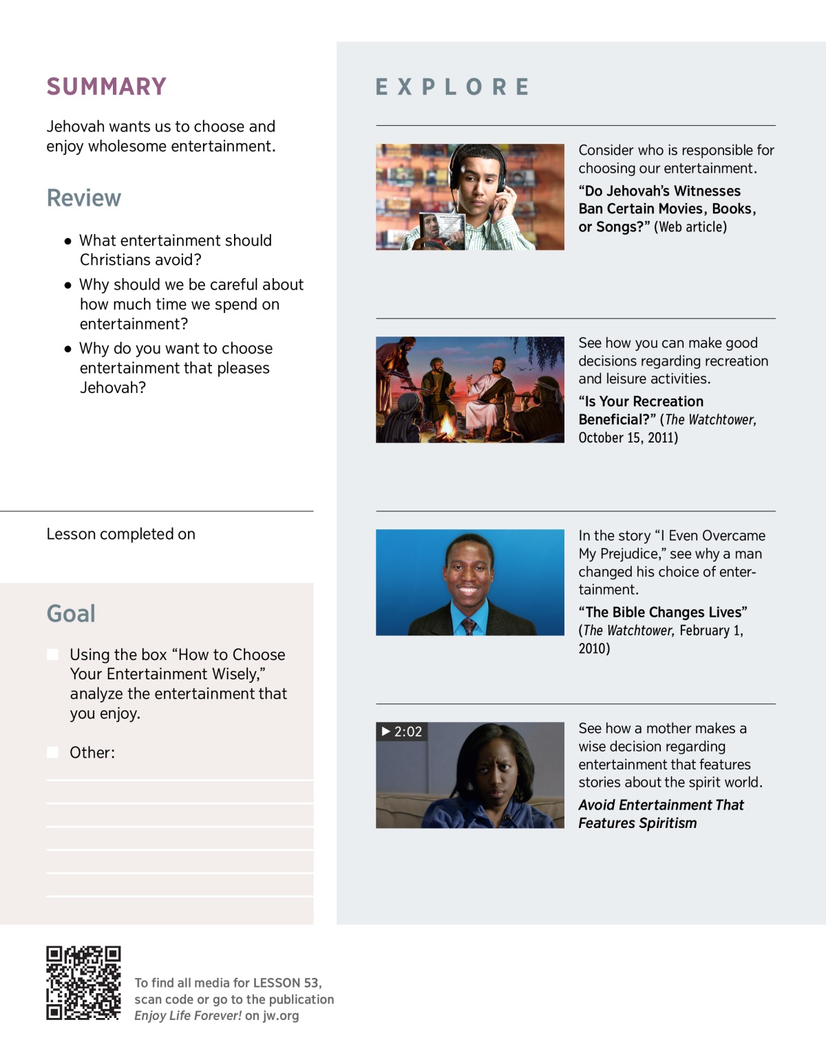 Jehovah wants us to choose and enjoy wholesome entertainment.