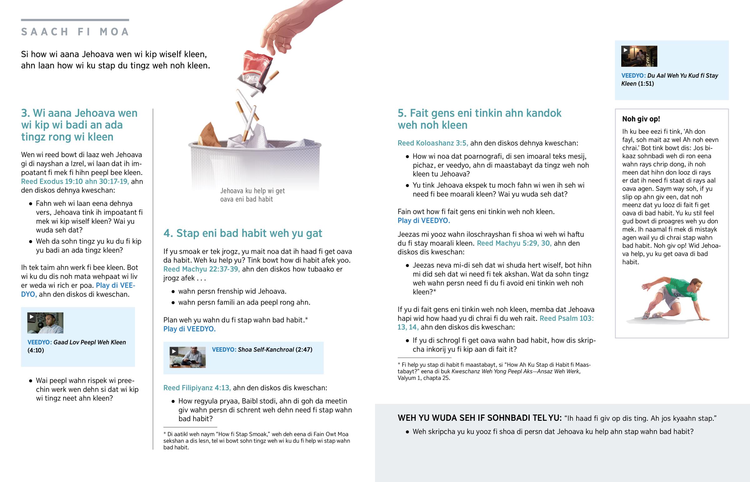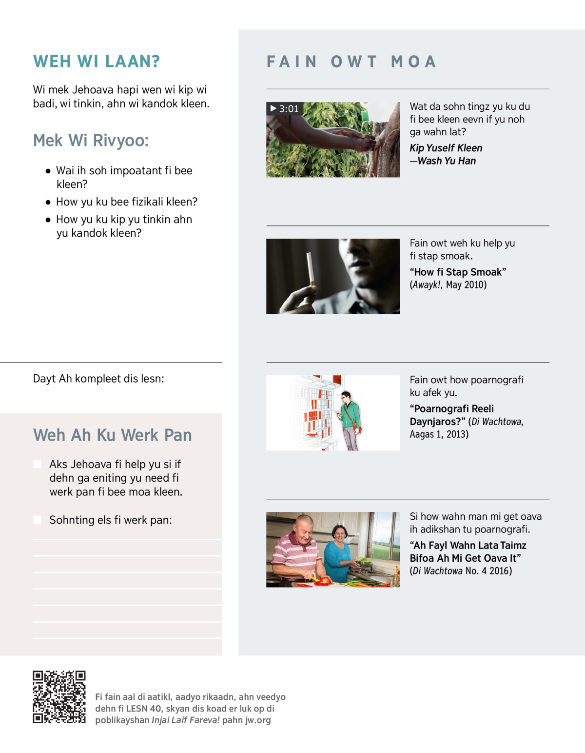 Si how wi aana Jehoava wen wi kip wiself kleen, ahn laan how wi ku stap du tingz weh noh kleen.