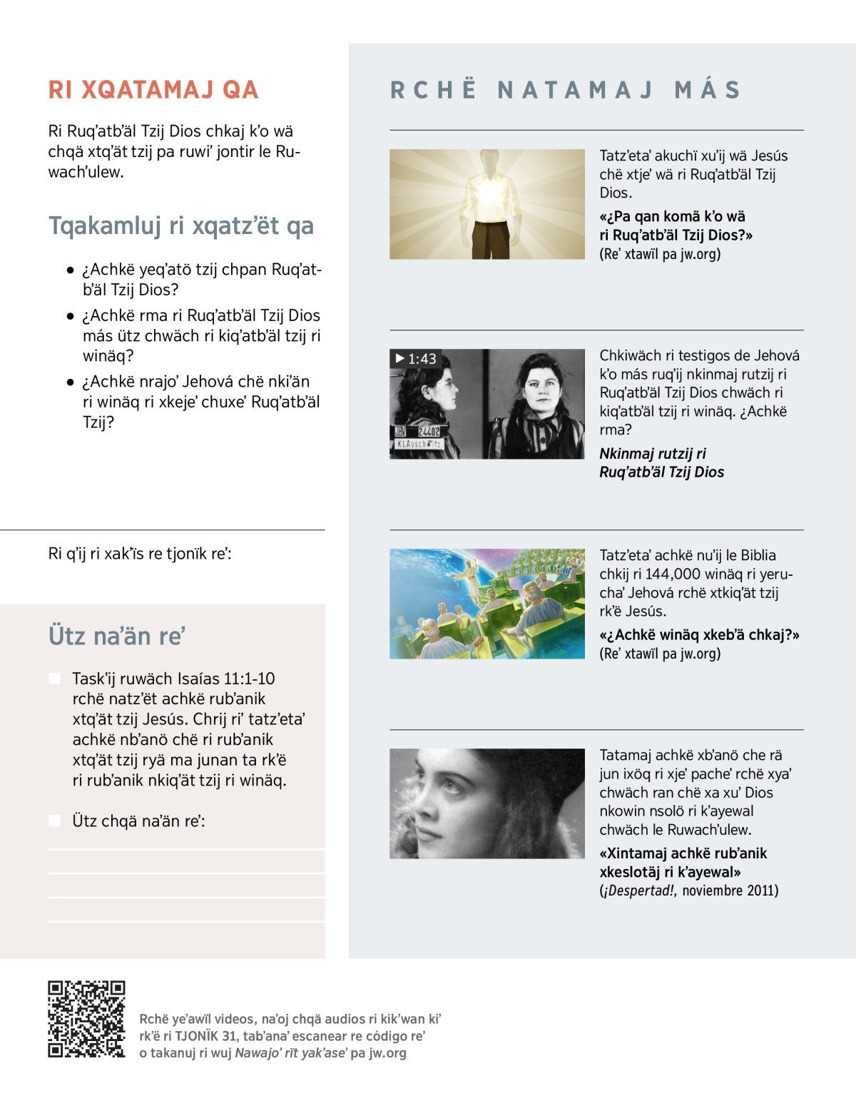 «¿Pa qan komä kʼo wä ri Ruqʼatbʼäl Tzij Dios?» (Reʼ xtawïl pa jw.org)