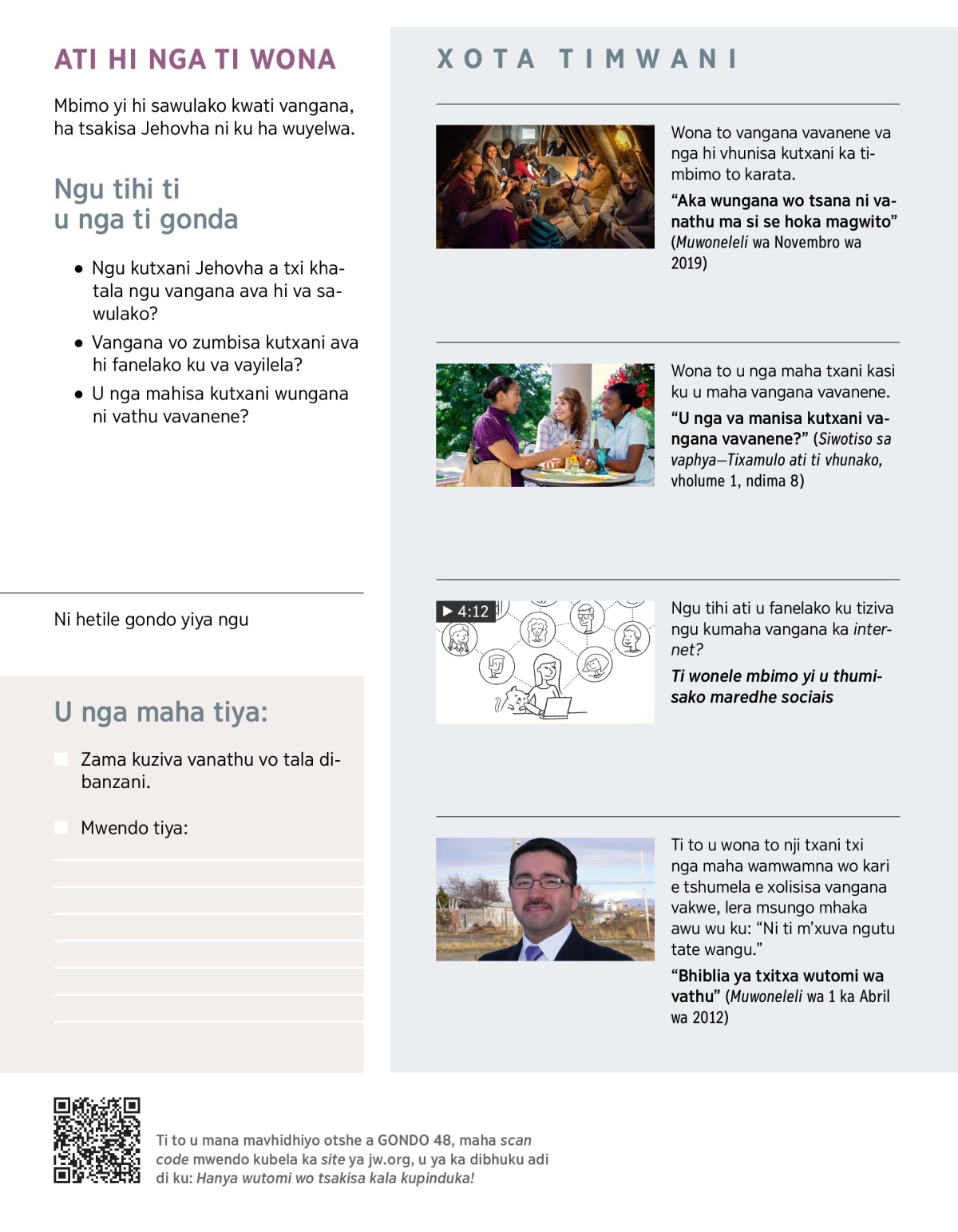 Mbimo yi hi sawulako kwati vangana, ha tsakisa Jehovha ni ku ha wuyelwa.