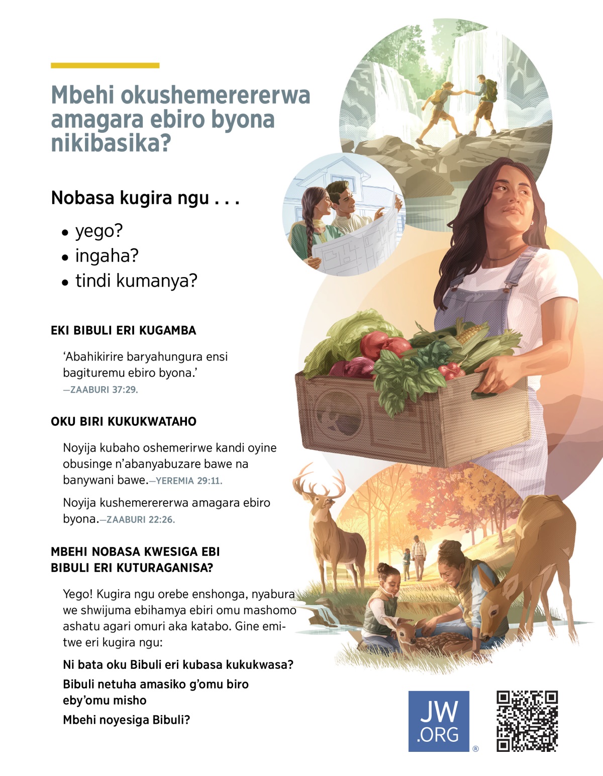 Yego! Kugira ngu orebe enshonga, nyabura we shwijuma ebihamya ebiri omu mashomo ashatu agari omuri aka katabo. Gine emitwe eri kugira ngu: