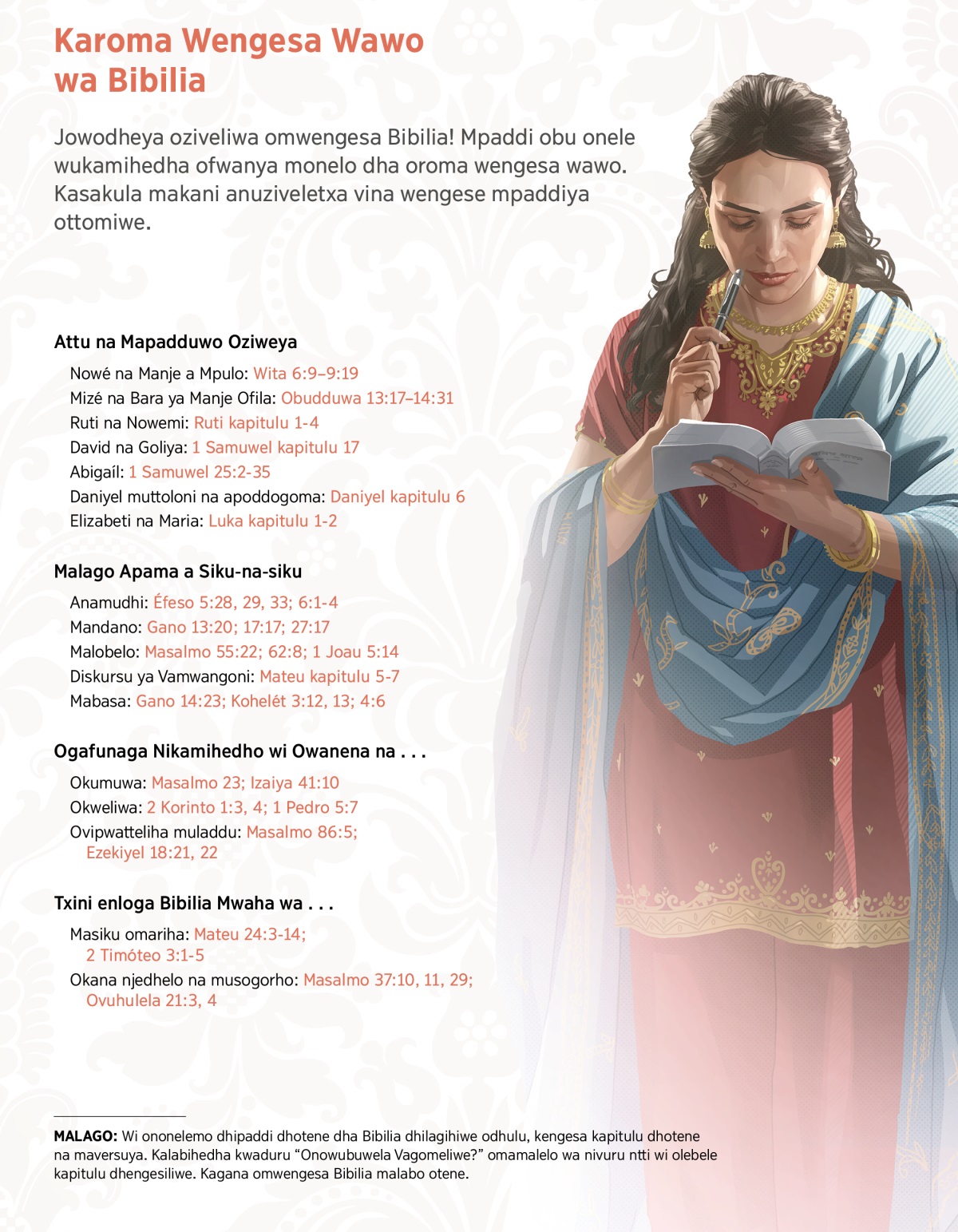 Jowodheya oziveliwa omwengesa Bibilia! Mpaddi obu onele wukamihedha ofwanya monelo dha oroma wengesa wawo. Kasakula makani anuziveletxa vina wengese mpaddiya ottomiwe.