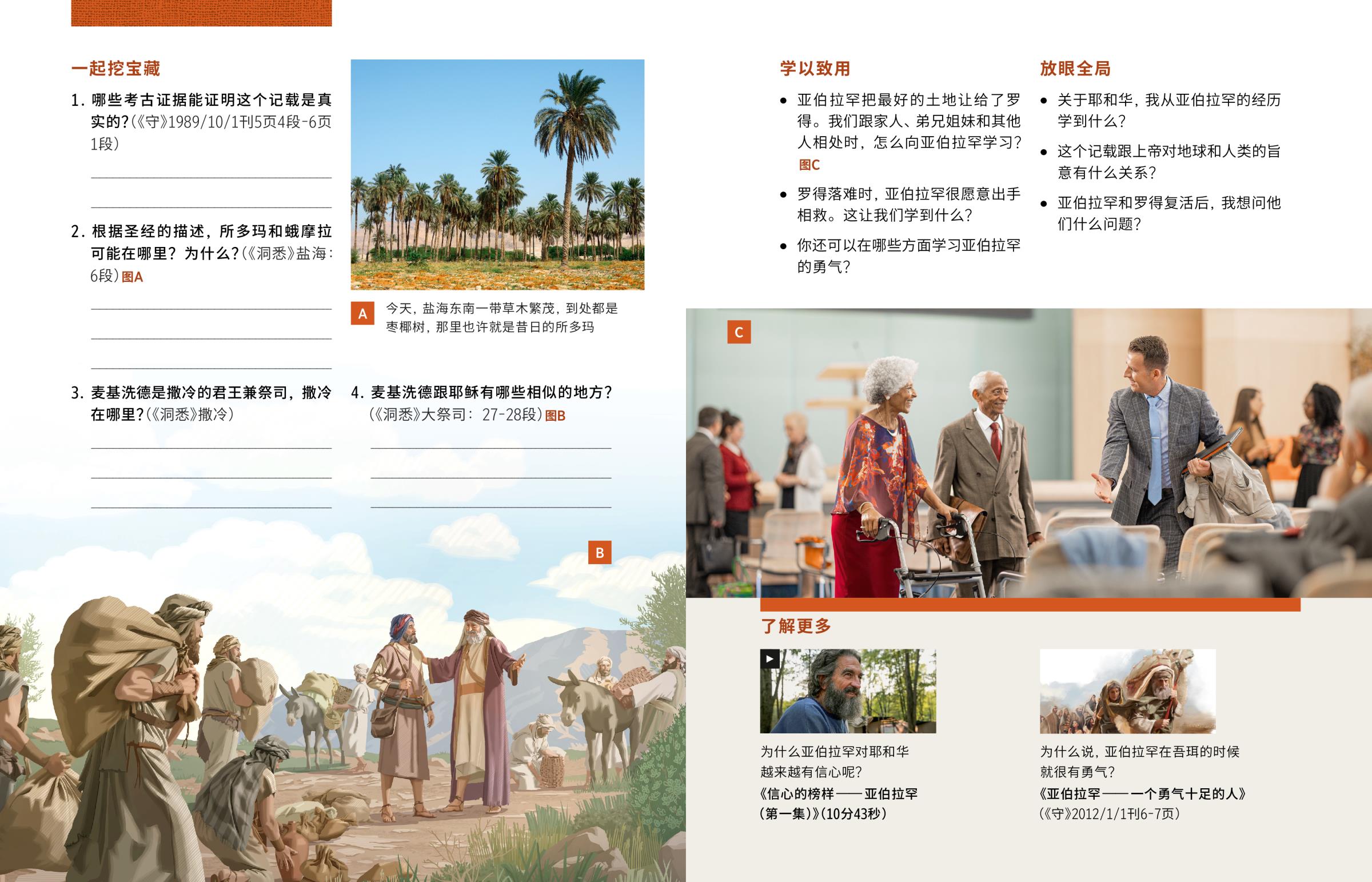 亚伯拉罕把最好的土地让给了罗得。我们跟家人、弟兄姐妹和其他人相处时,怎么向亚伯拉罕学习?图C