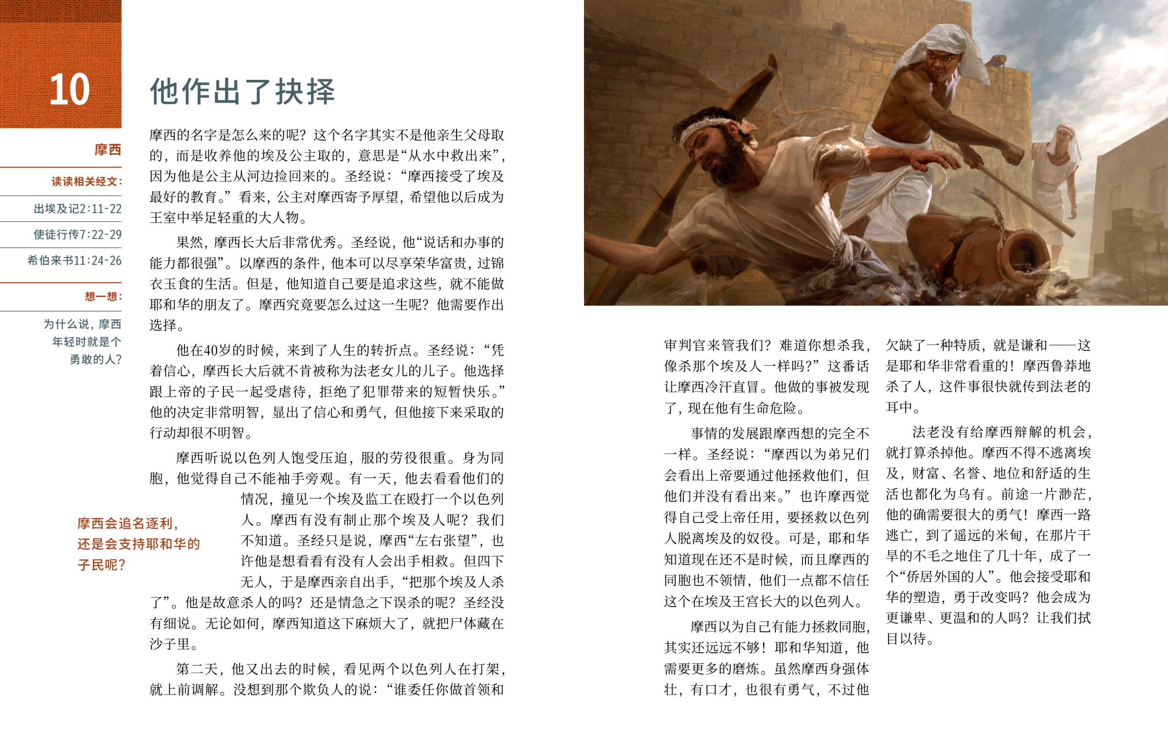 果然,摩西长大后非常优秀。圣经说,他“说话和办事的能力都很强”。以摩西的条件,他本可以尽享荣华富贵,过锦衣玉食的生活。但是,他知道自己要是追求这些,就不能做耶和华的朋友了。摩西究竟要怎么过这一生呢?他需要作出选择。