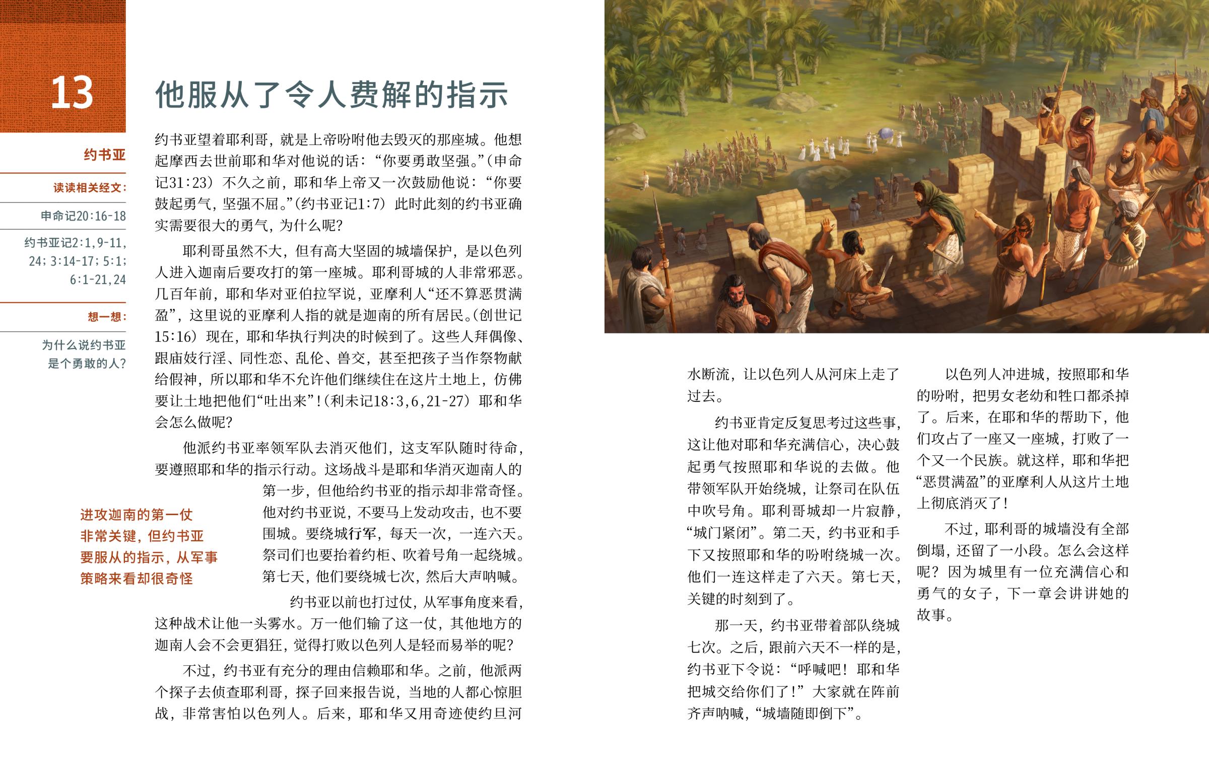 不过,耶利哥的城墙没有全部倒塌,还留了一小段。怎么会这样呢?因为城里有一位充满信心和勇气的女子,下一章会讲讲她的故事。