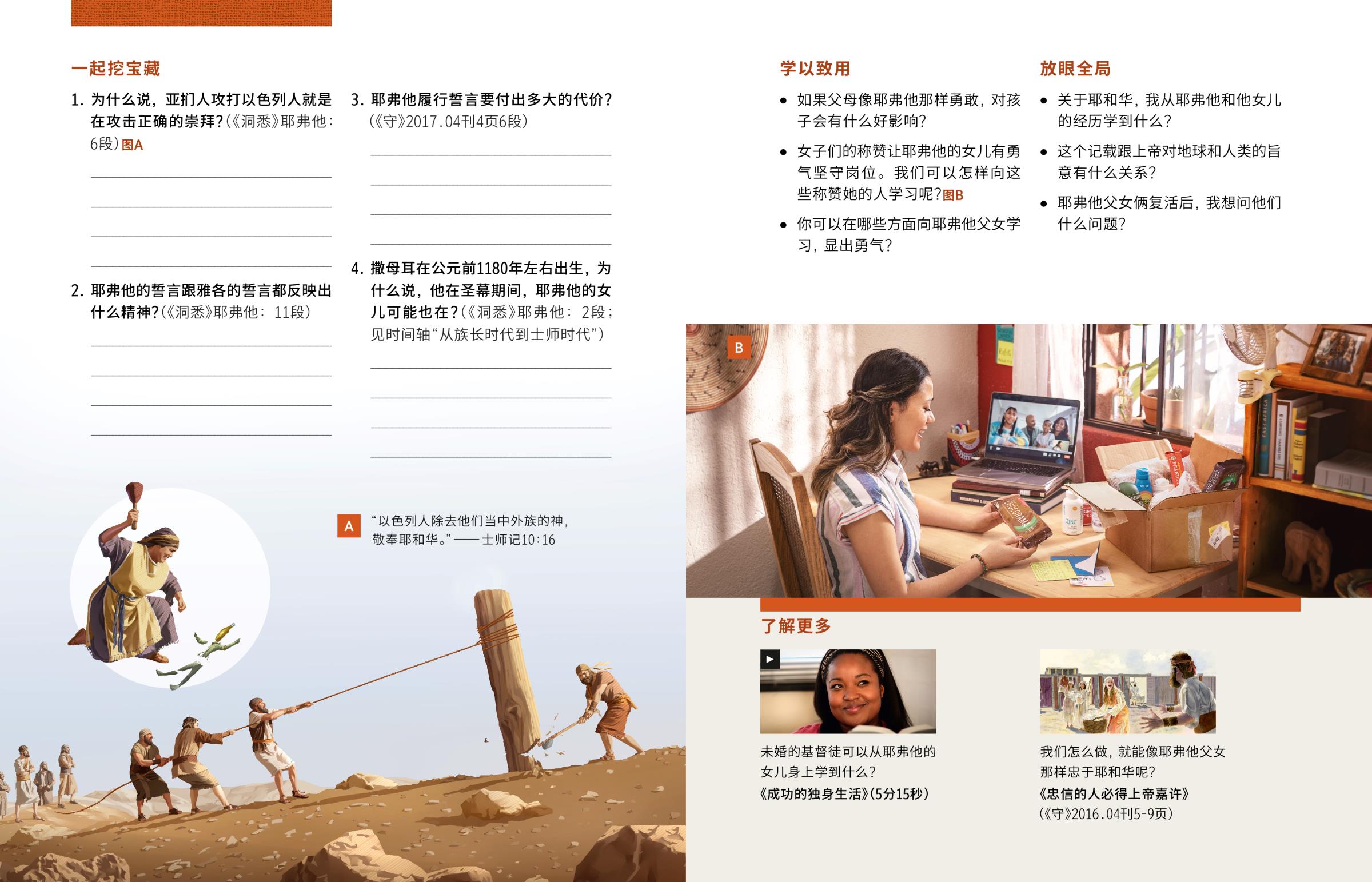 女子 们的称赞让耶弗他的女儿有勇气坚守岗位。我们可以怎样向这些称赞她的人学习呢?图B