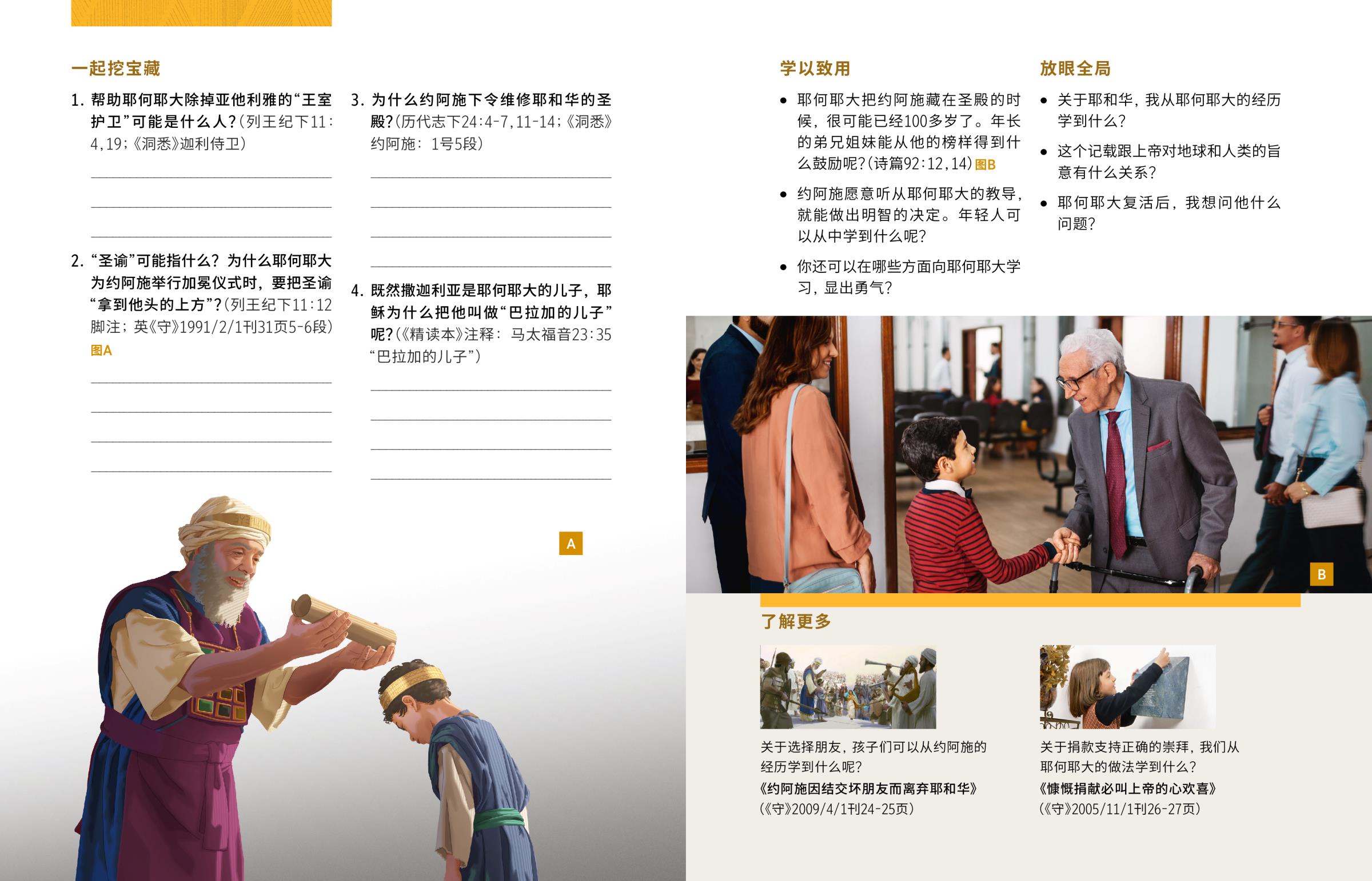 2.“圣谕”可能指什么?为什么耶何耶大为约阿施举行加冕仪式时,要把圣谕“拿到他头的上方”?(列王纪下11:12脚注;英《守》1991/2/1刊31页5-6段)图A