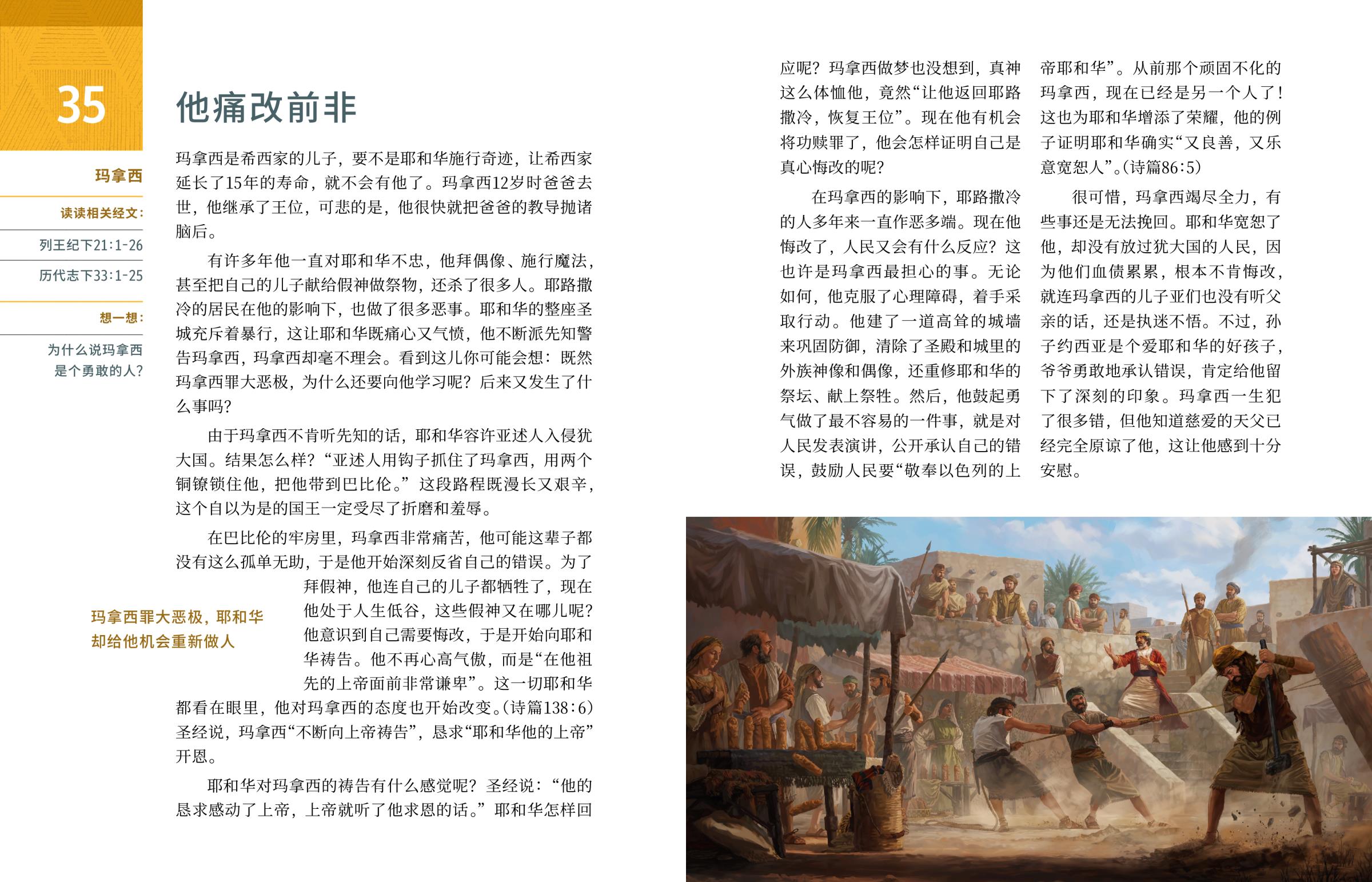 有许多年他一直对耶和华不忠,他拜偶像、施行魔法,甚至把自己的儿子献给假神做祭物,还杀了很多人。耶路撒冷的居民在他的影响下,也做了很多恶事。耶和华的整座圣城充斥着暴行,这让耶和华既痛心又气愤,他不断派先知警告玛拿西,玛拿西却毫不理会。看到这儿你可能会想:既然玛拿西罪大恶极,为什么还要向他学习呢?后来又发生了什么事吗?