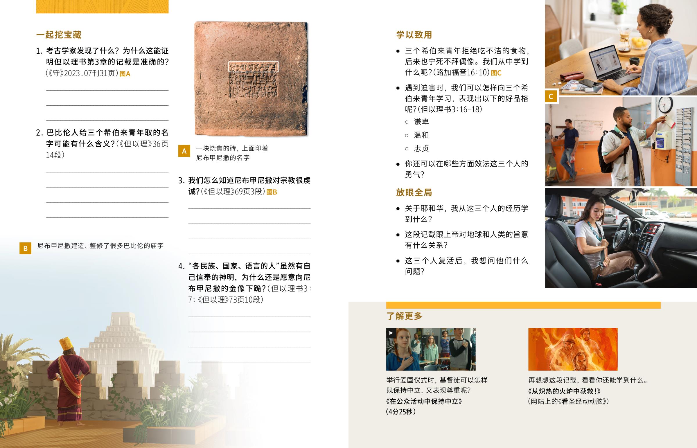 1.考古学家发现了什么?为什么这能证明但以理书第3章的记载是准确的?(《守》2023.07刊31页)图A