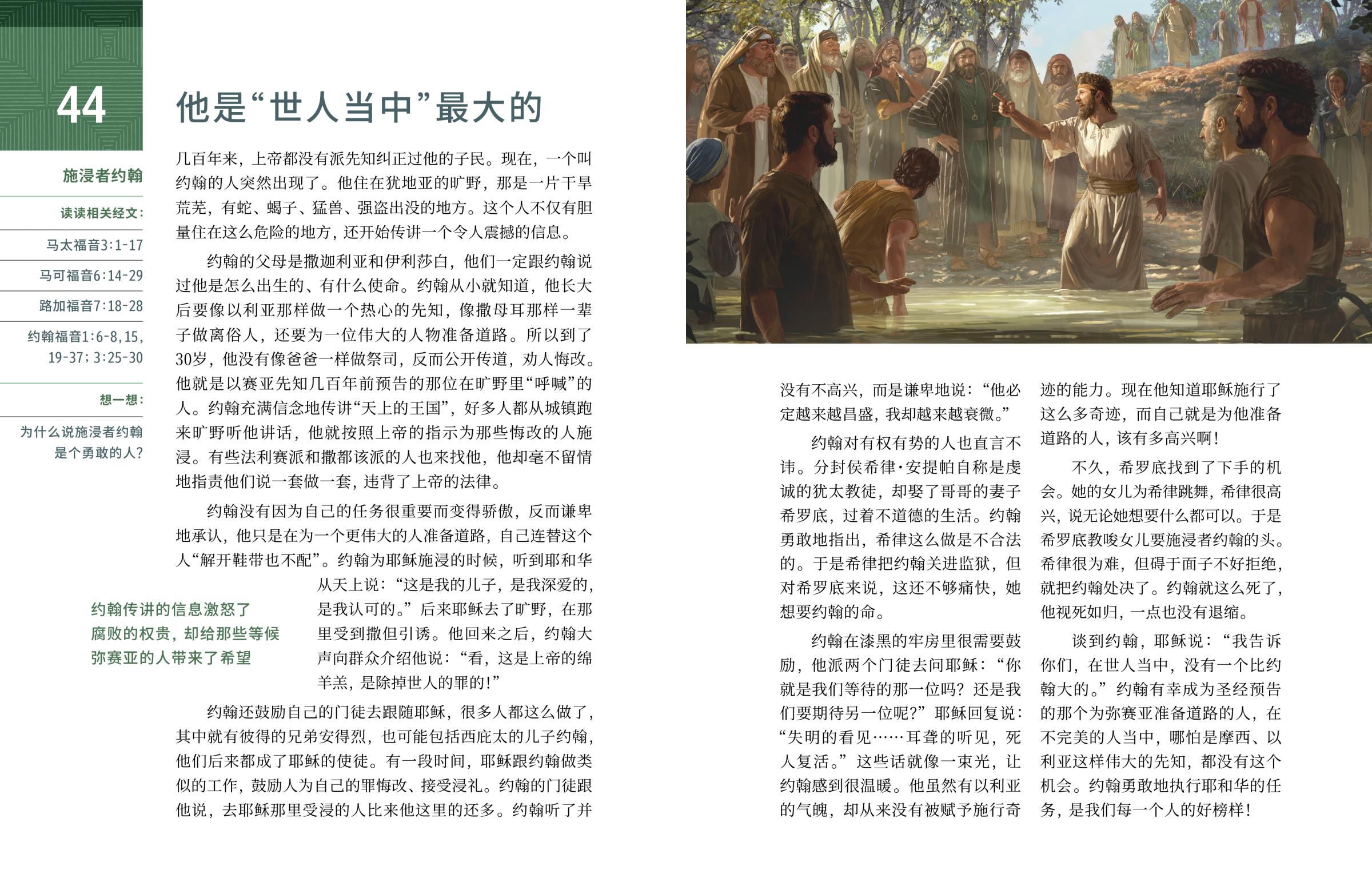 几百年来,上帝都没有派先知纠正过他的子民。现在,一个叫约翰的人突然出现了。他住在犹地亚的旷野,那是一片干旱荒芜,有蛇、蝎子、猛兽、强盗出没的地方。这个人不仅有胆量住在这么危险的地方,还开始传讲一个令人震撼的信息。
