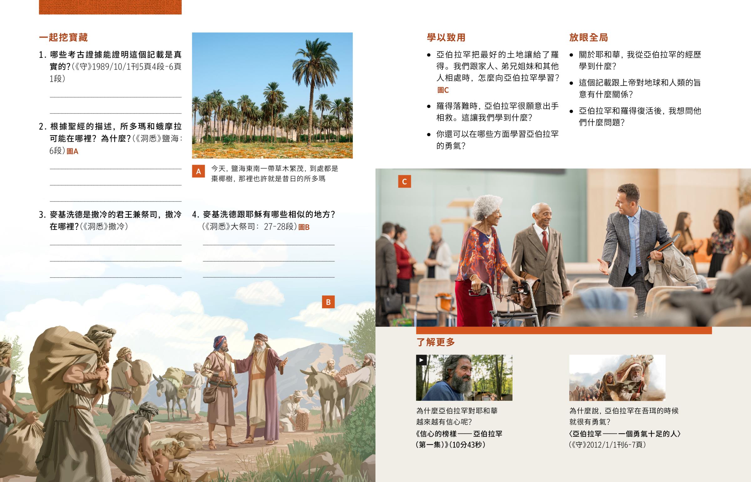 • 亞伯拉罕把最好的土地讓給了羅得。我們跟家人、弟兄姐妹和其他人相處時,怎麼向亞伯拉罕學習?圖C