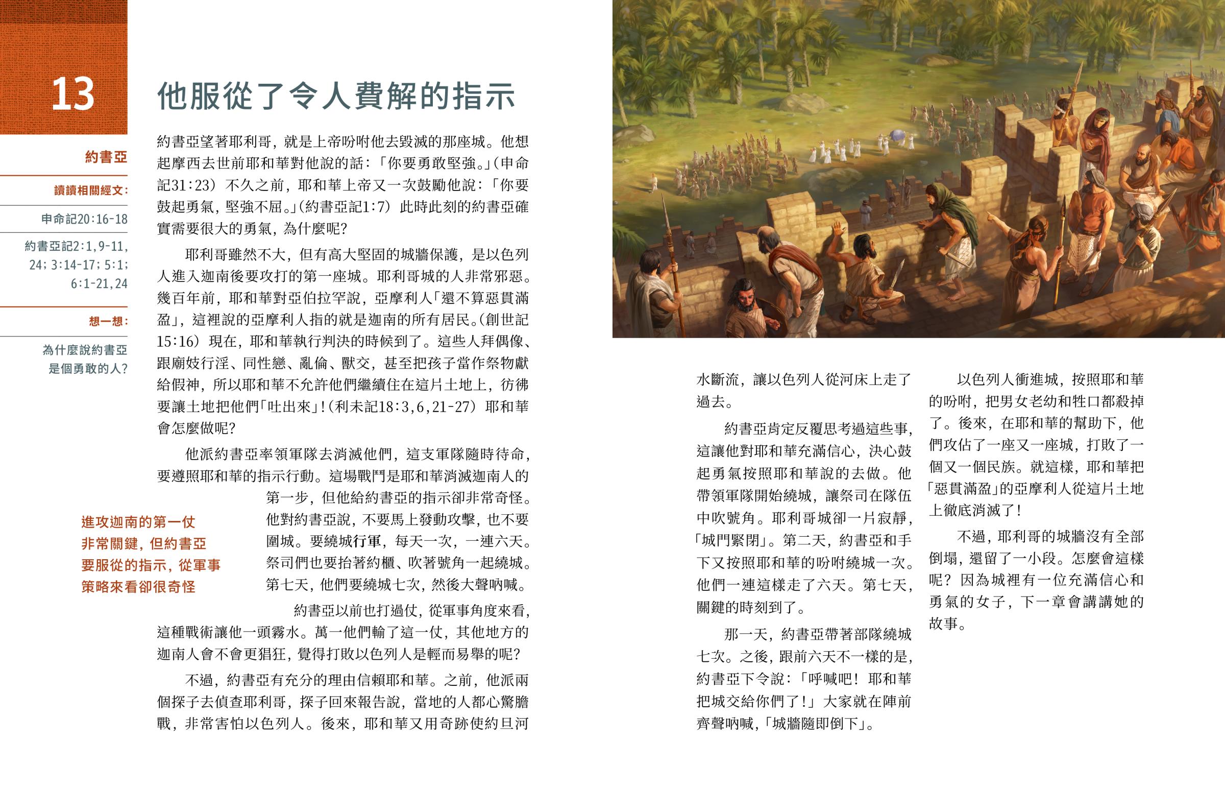 不過,耶利哥的城牆沒有全部倒塌,還留了一小段。怎麼會這樣呢?因為城裡有一位充滿信心和勇氣的女子,下一章會講講她的故事。