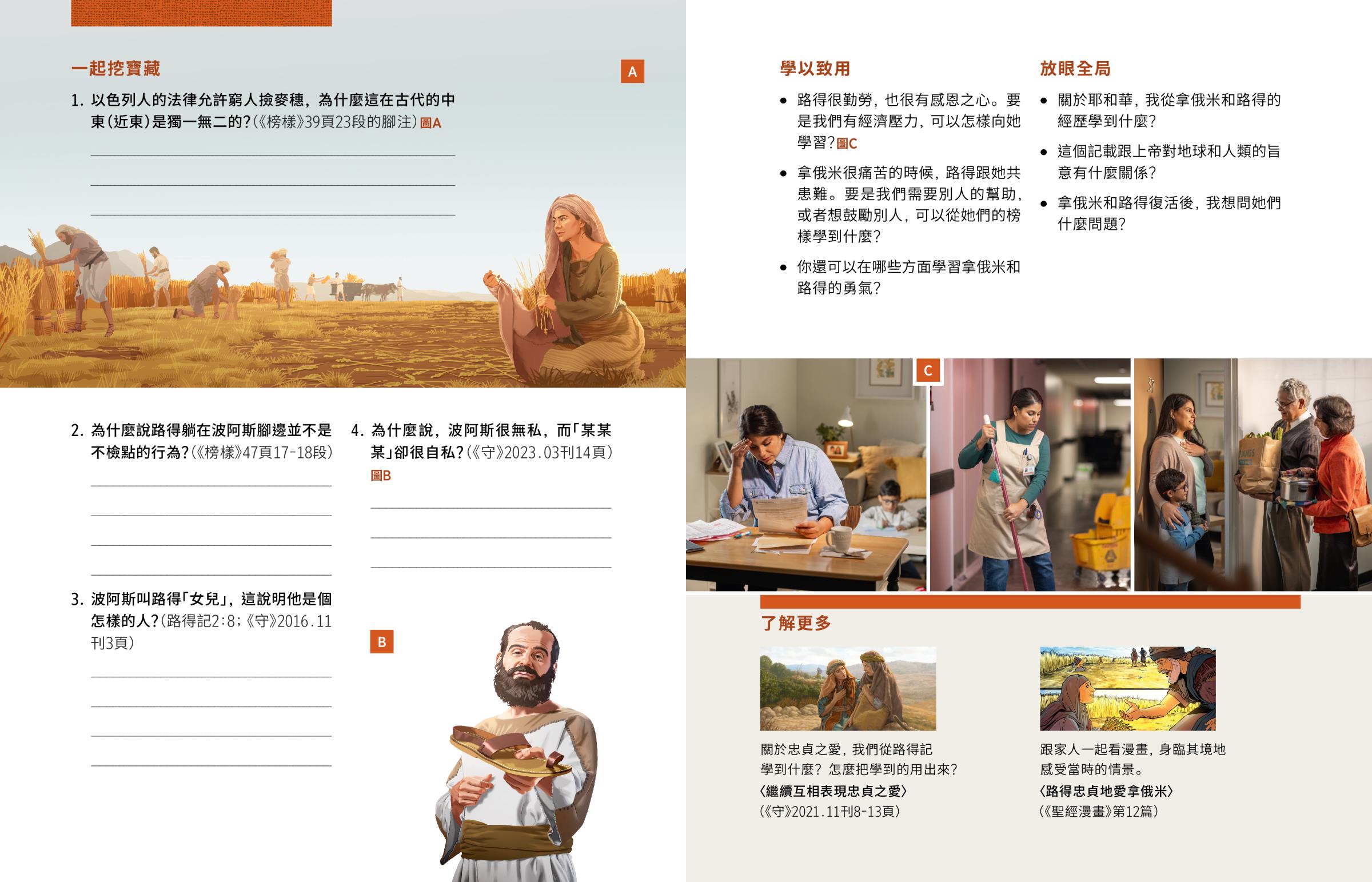 • 路得很勤勞,也很有感恩之心。要是我們有經濟壓力,可以怎樣向她學習?圖C