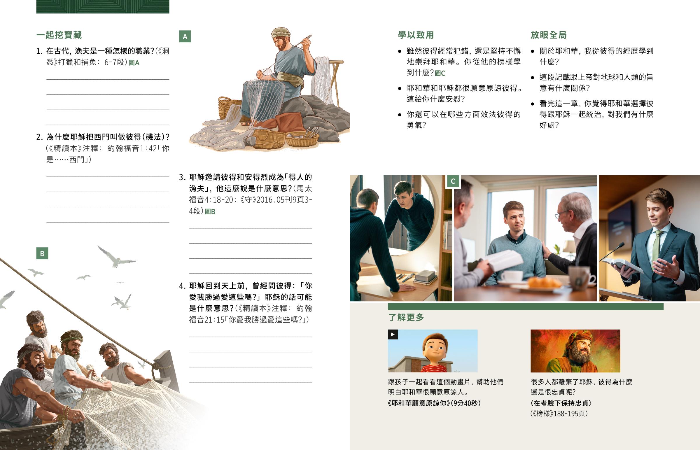 雖然彼得經常犯錯,還是堅持不懈地崇拜耶和華。你從他的榜樣學到什麼?圖C