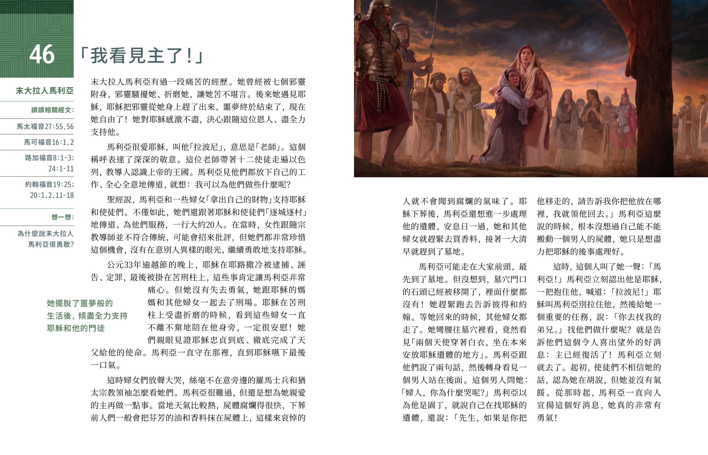 這時,這個人叫了她一聲:「馬利亞!」馬利亞立刻認出他是耶穌,一把抱住他,喊道:「拉波尼!」耶穌叫馬利亞別拉住他,然後給她一個重要的任務,說:「你去找我的弟兄。」找他們做什麼呢?就是告訴他們這個令人喜出望外的好消息:主已經復活了!馬利亞立刻就去了。起初,使徒們不相信她的話,認為她在胡說,但她並沒有氣餒。從那時起,馬利亞一直向人宣揚這個好消息,她真的非常有勇氣!