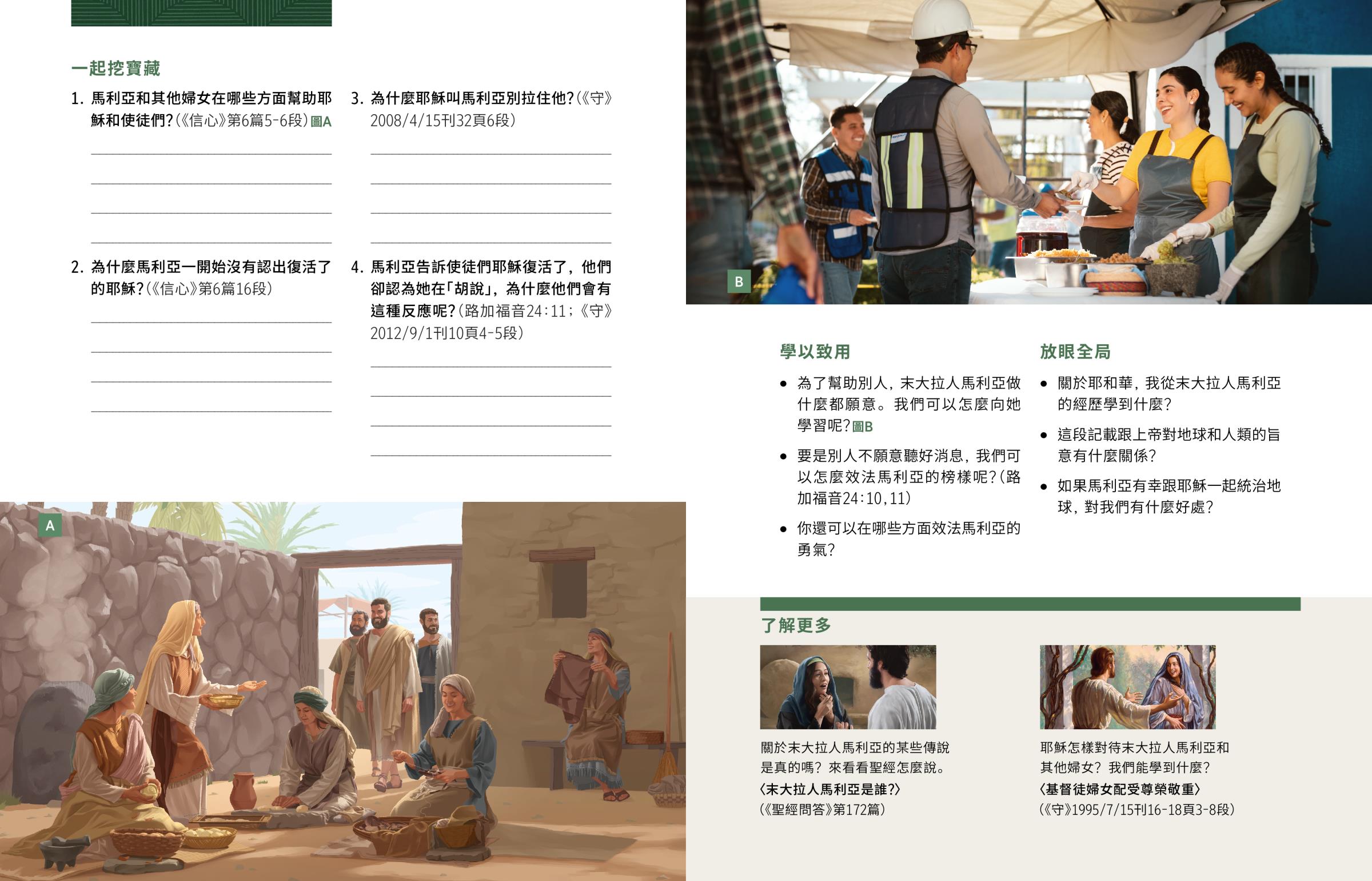 1.馬利亞和其他婦女在哪些方面幫助耶穌和使徒們?(《信心》第6篇5-6段)圖A