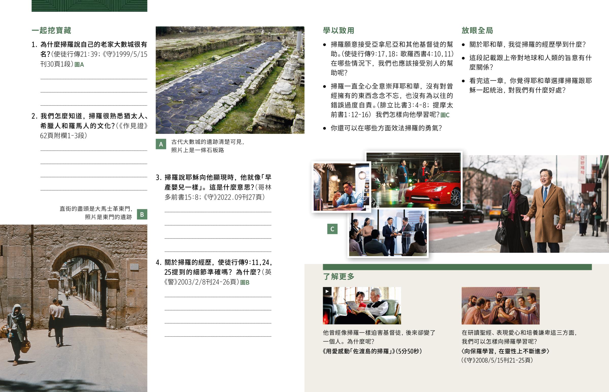 2. 2.我們怎麼知道,掃羅很熟悉猶太人、希臘人和羅馬人的文化?(《作見證》62頁附欄1-3段)