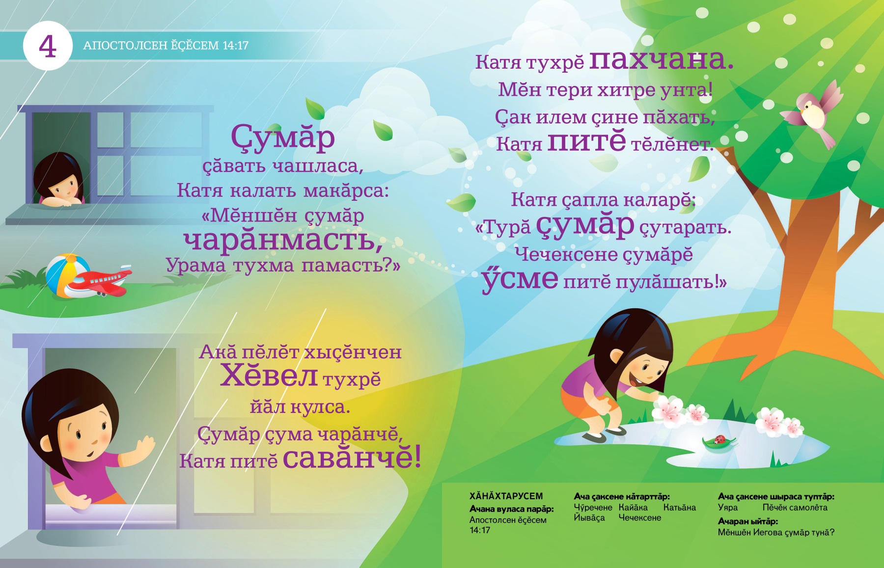Катя ҫапла каларӗ: «Турӑ ҫумӑр ҫутарать. Чечексене ҫумӑрӗ ӳсме питӗ пулӑшать!»