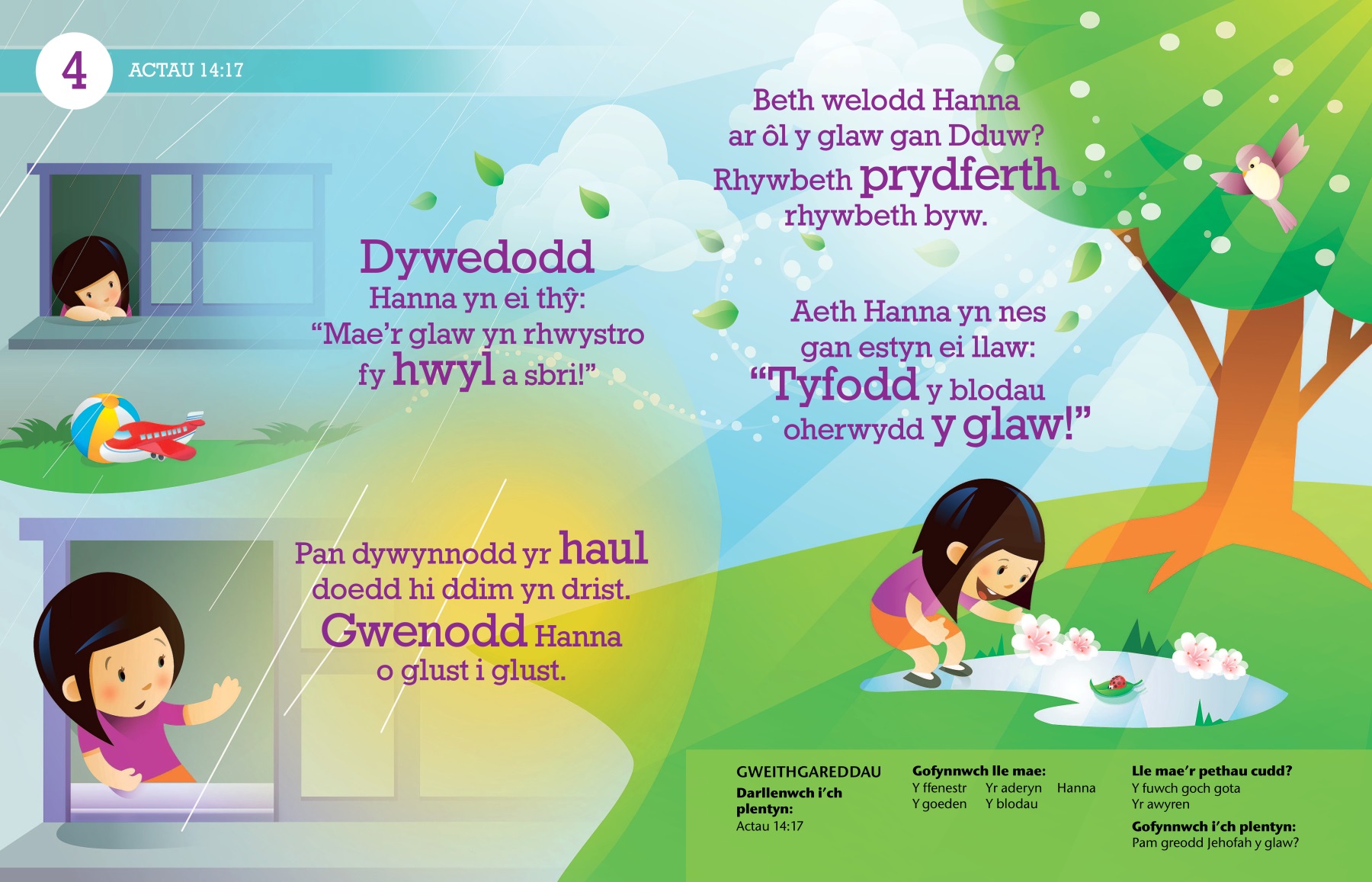 “Mae’r glaw yn rhwystro fy hwyl a sbri!”