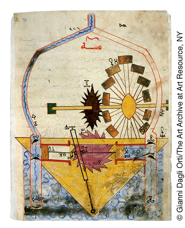 I 1206 færdiggjorde Ibn al-Razzaz al-Jazari sit værk, et kompendium om den mekaniske kunst i teori og praksis. Det er blevet kaldt „et studium i systematisk maskinkonstruktion“. Noget af al-Jazaris teknologi overgik langt den som Banu Musa’erne stod bag, og hans beskrivelser og diagrammer var så detaljerede at ingeniører i dag kan genskabe hans tekniske frembringelser.