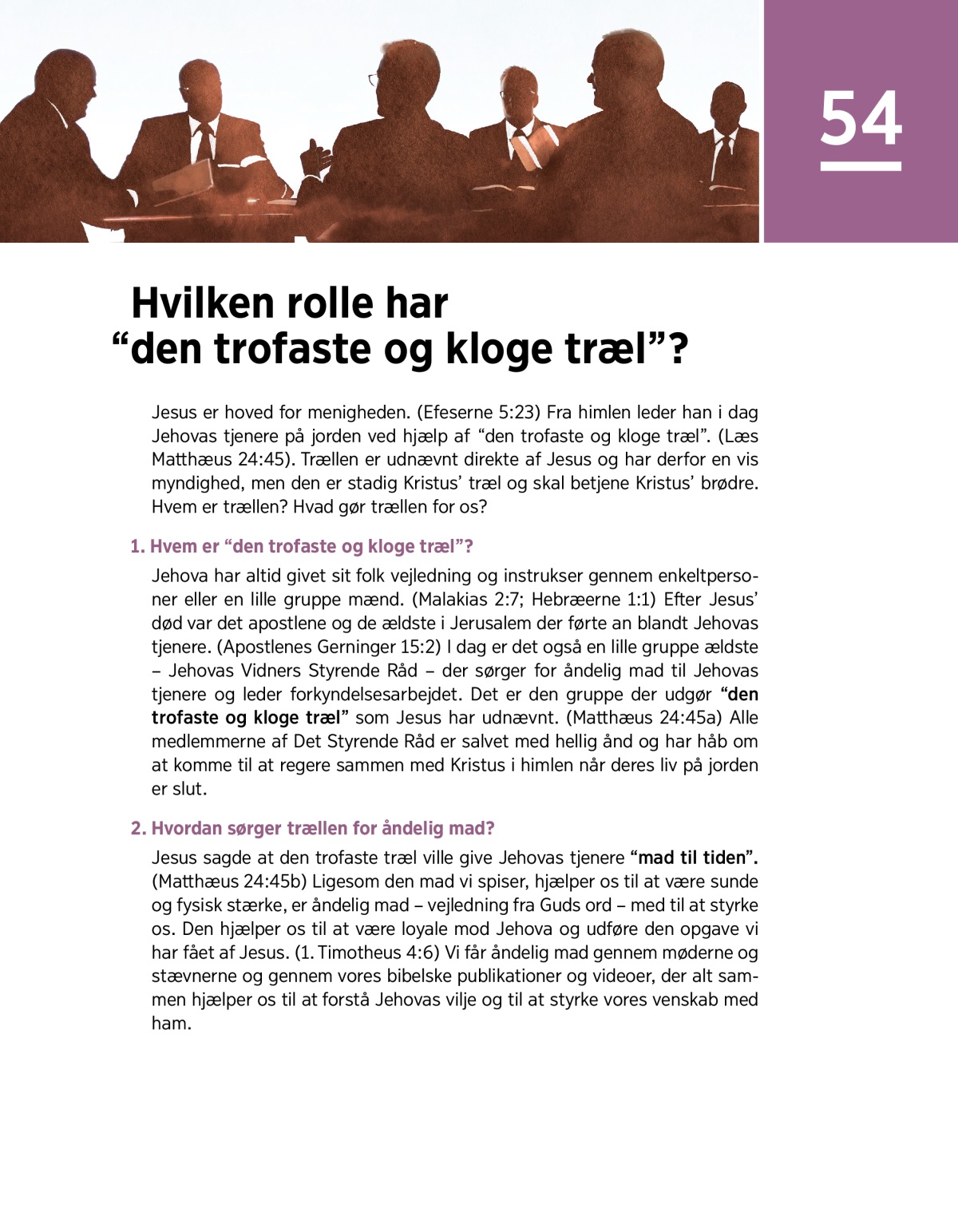 Jesus er hoved for menigheden. (Efeserne 5:23) Fra himlen leder han i dag Jehovas tjenere på jorden ved hjælp af “den trofaste og kloge træl”. (Læs Matthæus 24:45). Trællen er udnævnt direkte af Jesus og har derfor en vis myndighed, men den er stadig Kristus’ træl og skal betjene Kristus’ brødre. Hvem er trællen? Hvad gør trællen for os?