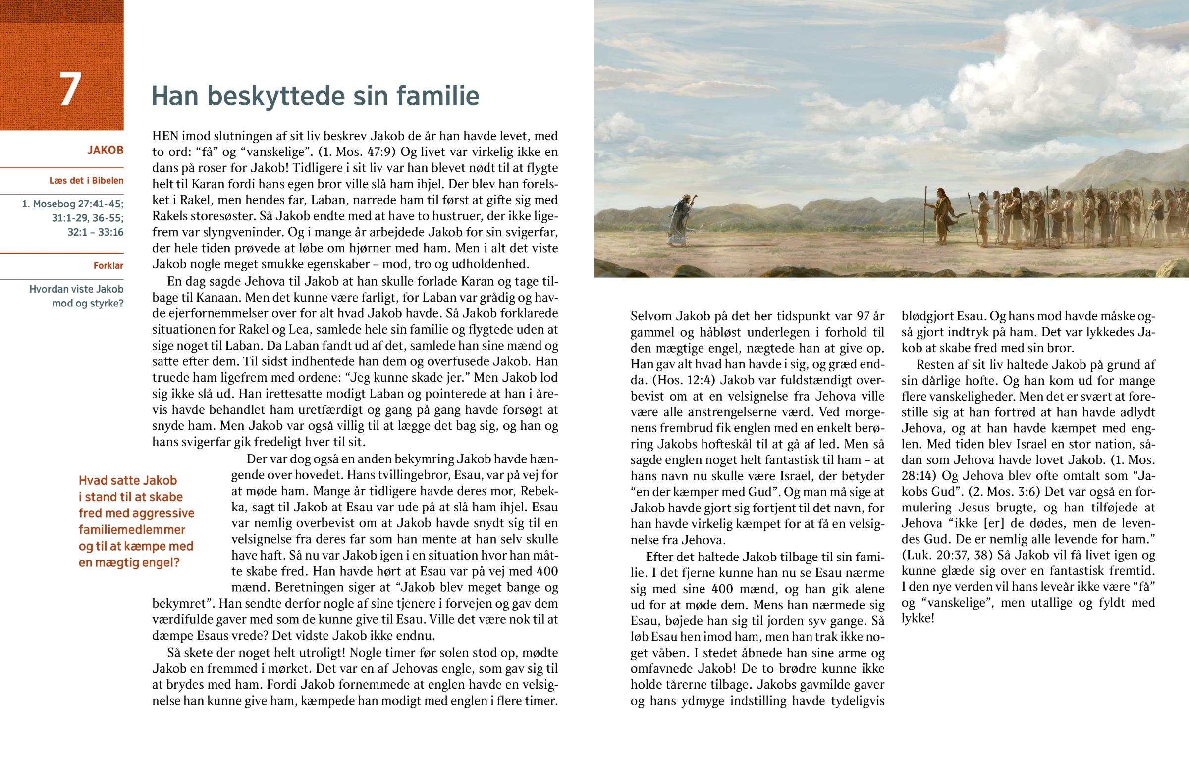 HEN imod slutningen af sit liv beskrev Jakob de år han havde levet, med to ord: “få” og “vanskelige”. (1. Mos. 47:9) Og livet var virkelig ikke en dans på roser for Jakob! Tidligere i sit liv var han blevet nødt til at flygte helt til Karan fordi hans egen bror ville slå ham ihjel. Der blev han forelsket i Rakel, men hendes far, Laban, narrede ham til først at gifte sig med Rakels storesøster. Så Jakob endte med at have to hustruer, der ikke ligefrem var slyngveninder. Og i mange år arbejdede Jakob for sin svigerfar, der hele tiden prøvede at løbe om hjørner med ham. Men i alt det viste Jakob nogle meget smukke egenskaber – mod, tro og udholdenhed.