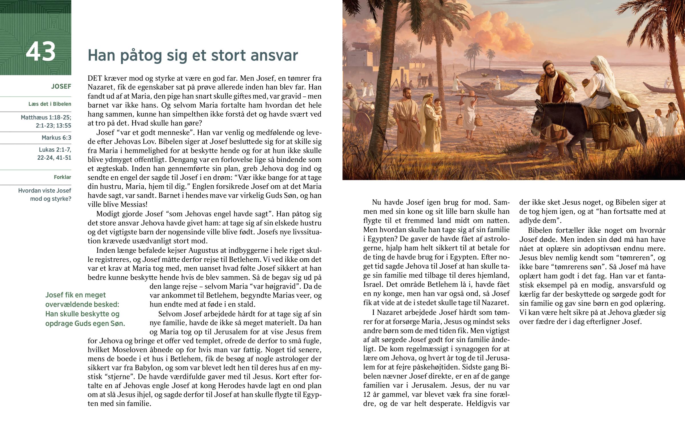 Josef adlød Jehova, selv når det krævede store ofre. Hvad kan forældre lære ham? (Matt. 1:20, 24; 2:13-15, 19-21)
