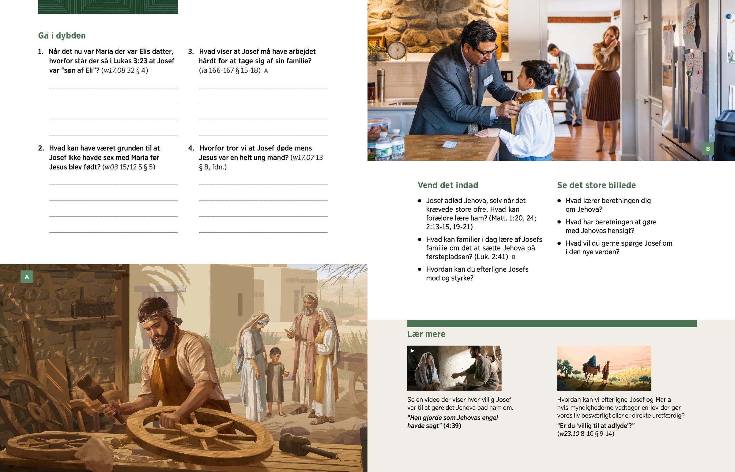 Hvad kan familier i dag lære af Josefs familie om det at sætte Jehova på førstepladsen? (Luk. 2:41) B