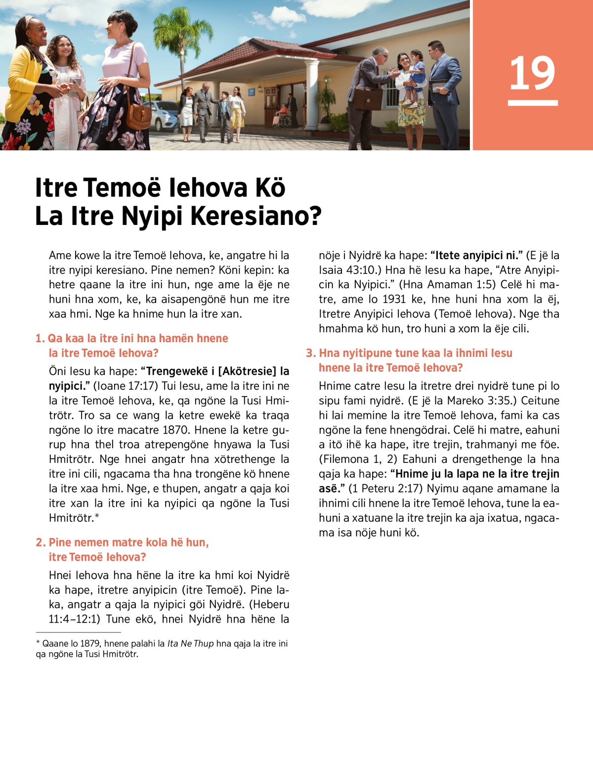 Itre Temoë Iehova la nyipi keresiano. Fami ka cas ngöne la fene hnengödrai. Hna xom la itre ini hun qa ngöne la Tusi Hmitrötr, nge eahuni a qaja kowe la itre atr la nyipici göi Iehova.