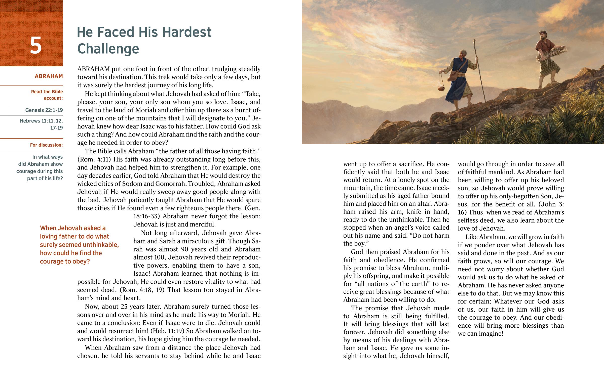 He kept thinking about what Jehovah had asked of him: “Take, please, your son, your only son whom you so love, Isaac, and travel to the land of Moriah and offer him up there as a burnt offering on one of the mountains that I will designate to you.” Jehovah knew how dear Isaac was to his father. How could God ask such a thing? And how could Abraham find the faith and the courage he needed in order to obey?
